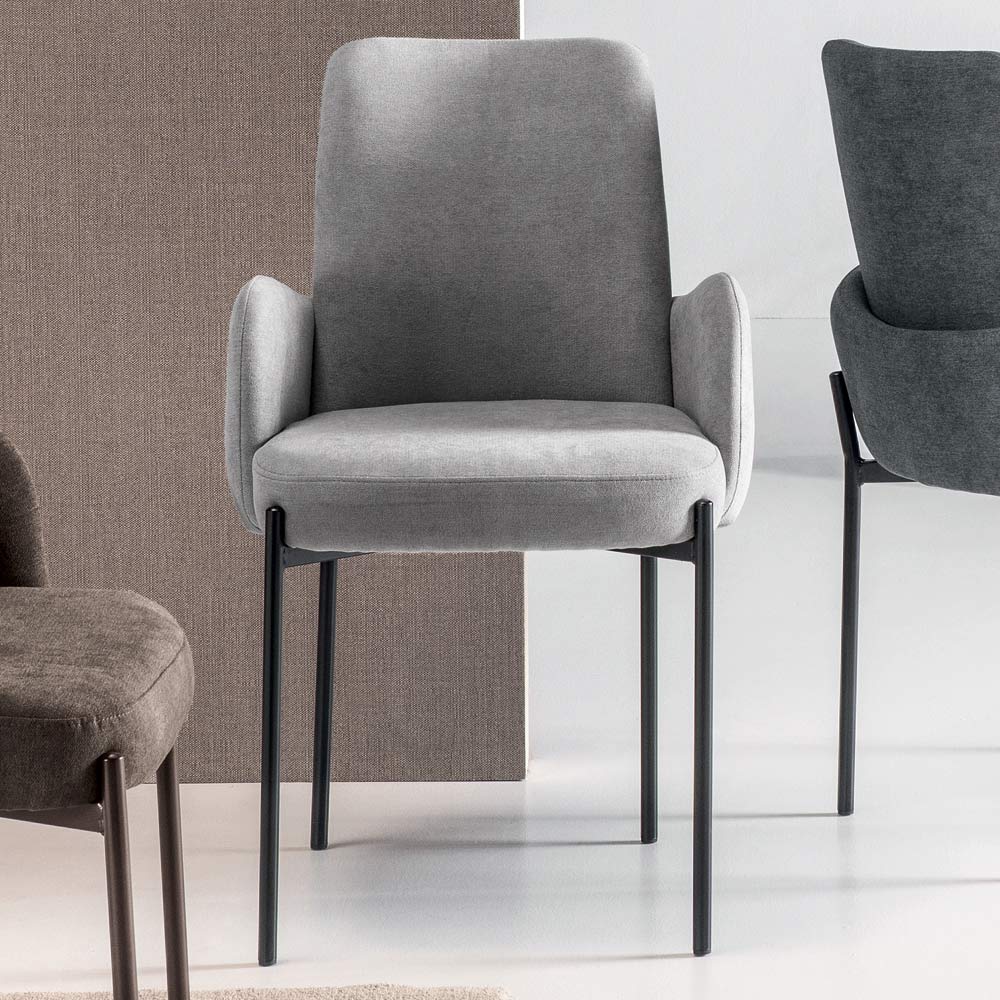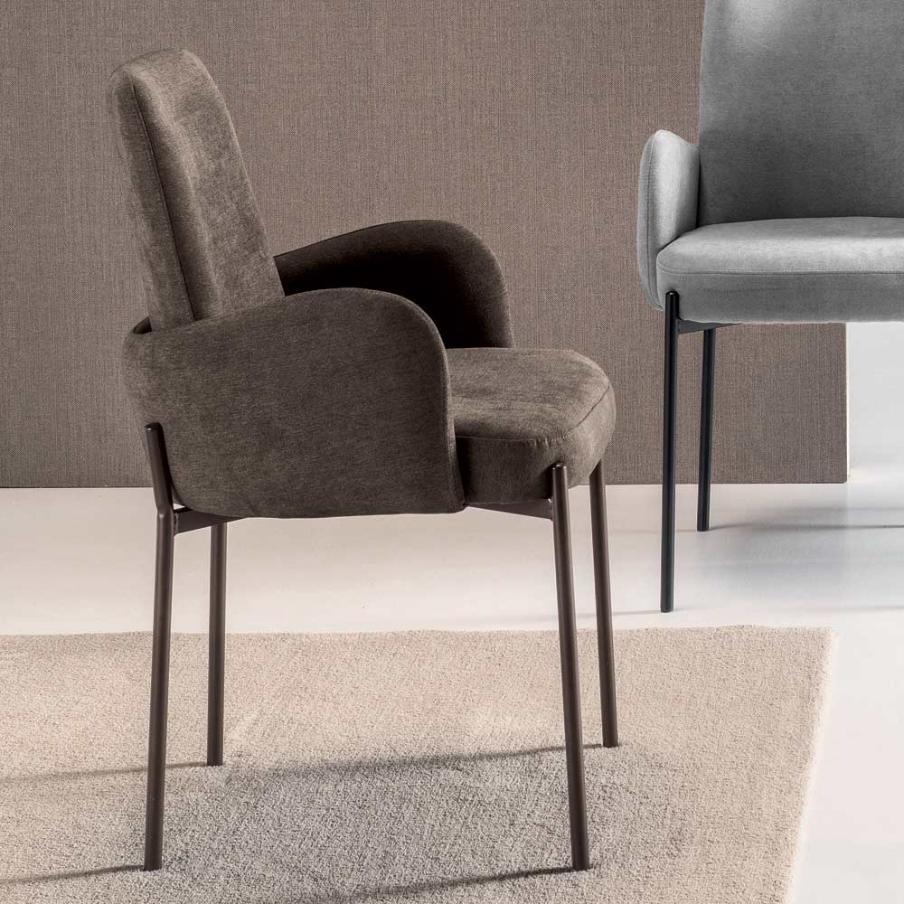 A estrutura metálica pintada, fina e resistente, acomoda o assento como um elemento precioso, encaixando-se perfeitamente na estrutura, realçando seu perfil e conferindo leveza visual ao design geral. Disponível em diversos acabamentos e cores para se adaptar facilmente a diferentes estilos de decoração.