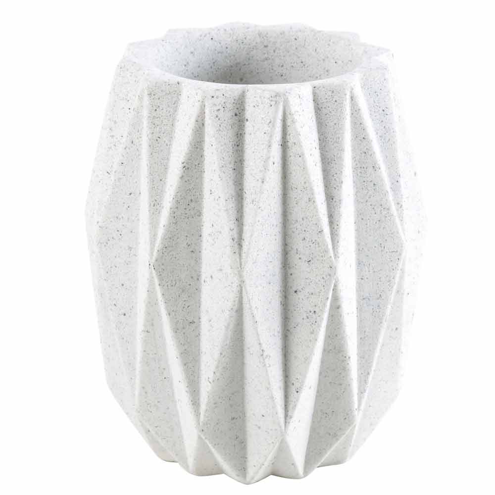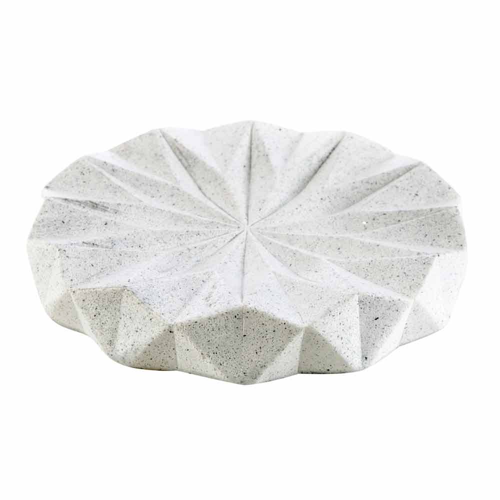 Fabricado em resina pigmentada de cor branca com entrelaçamento de formas geométricas exclusivas.