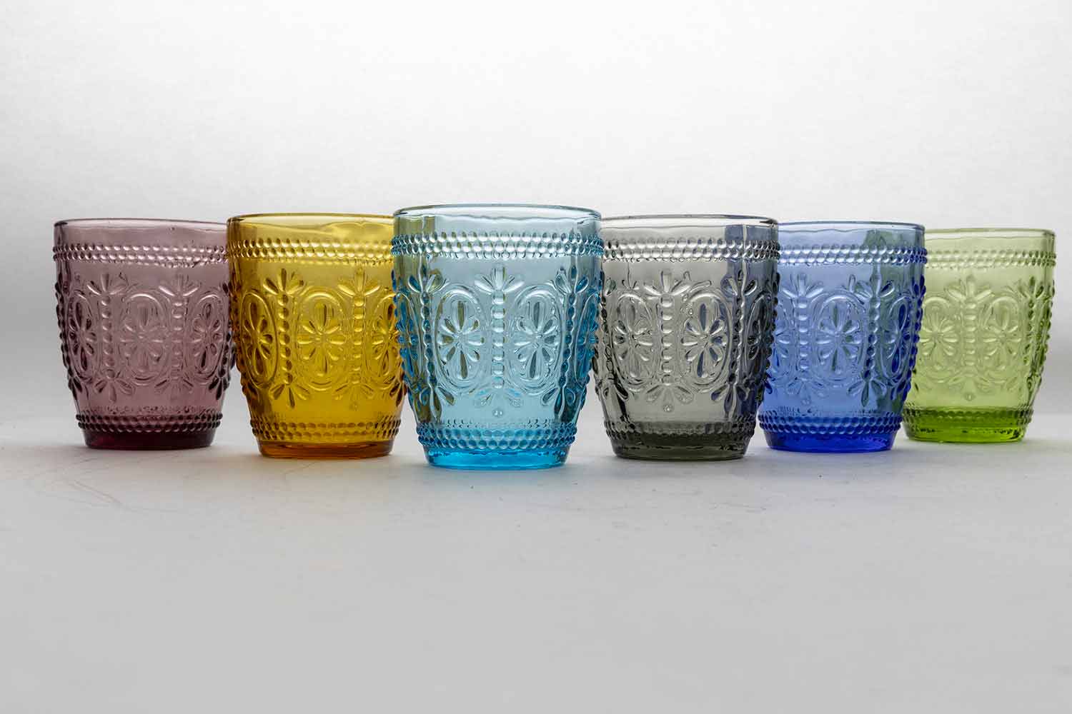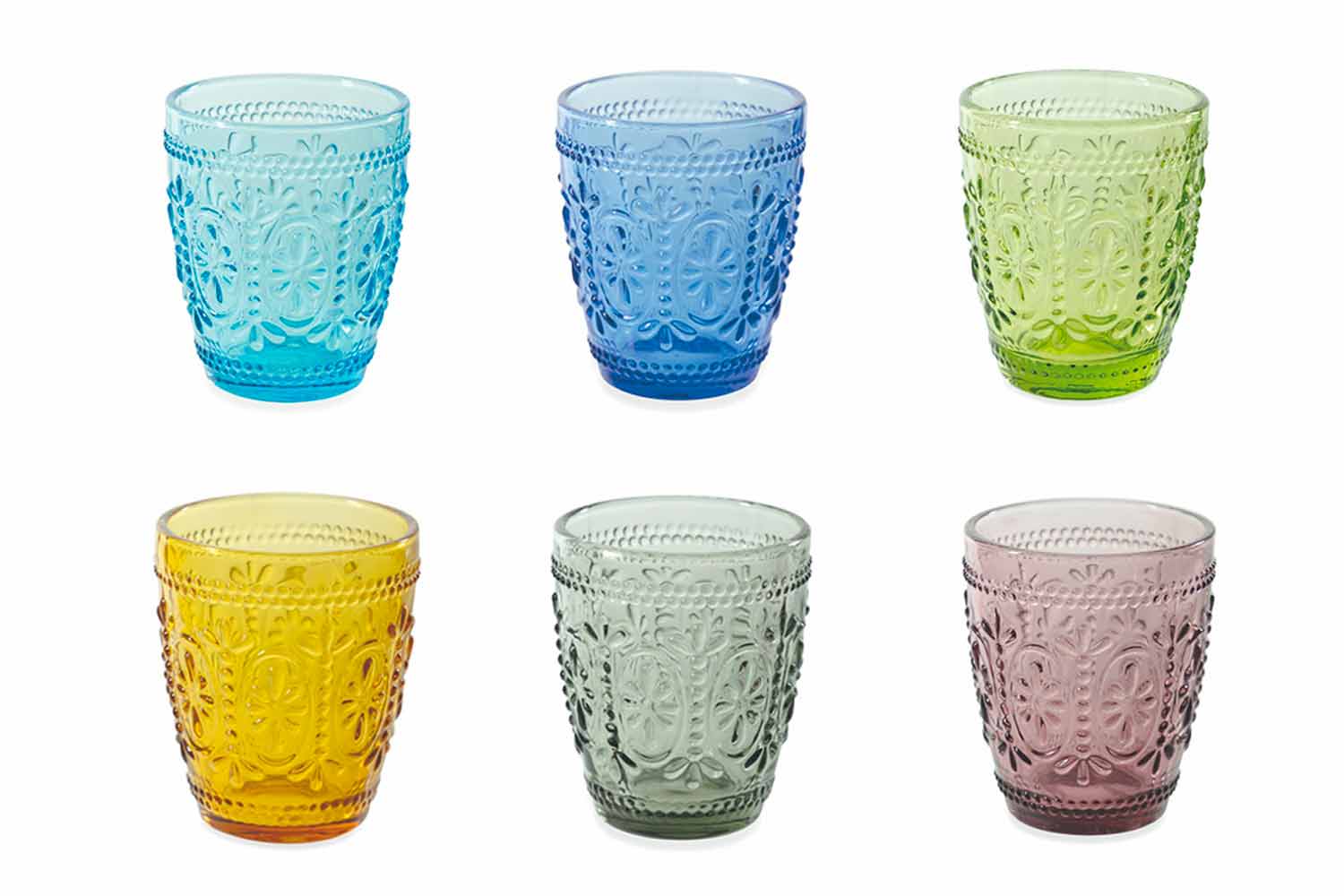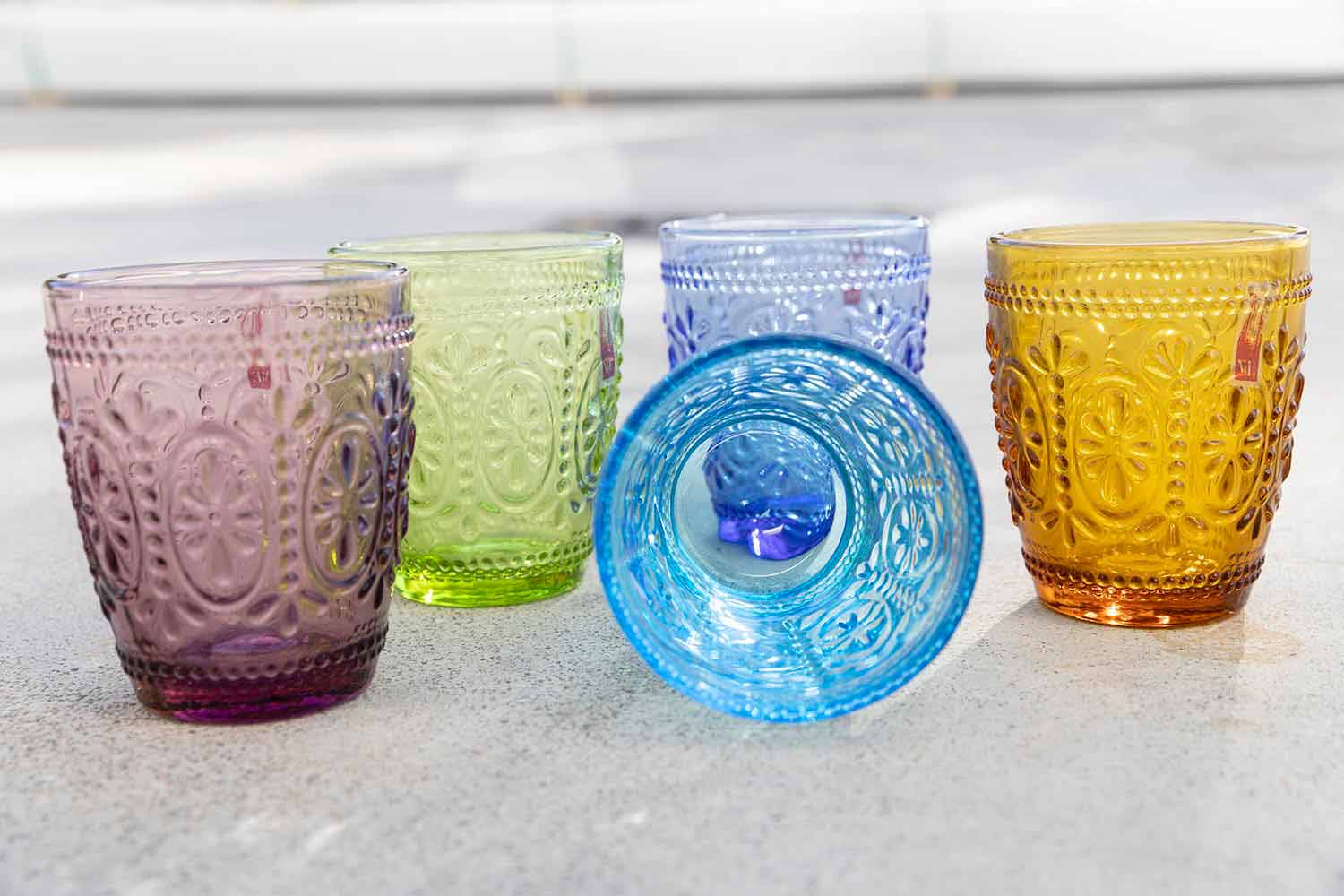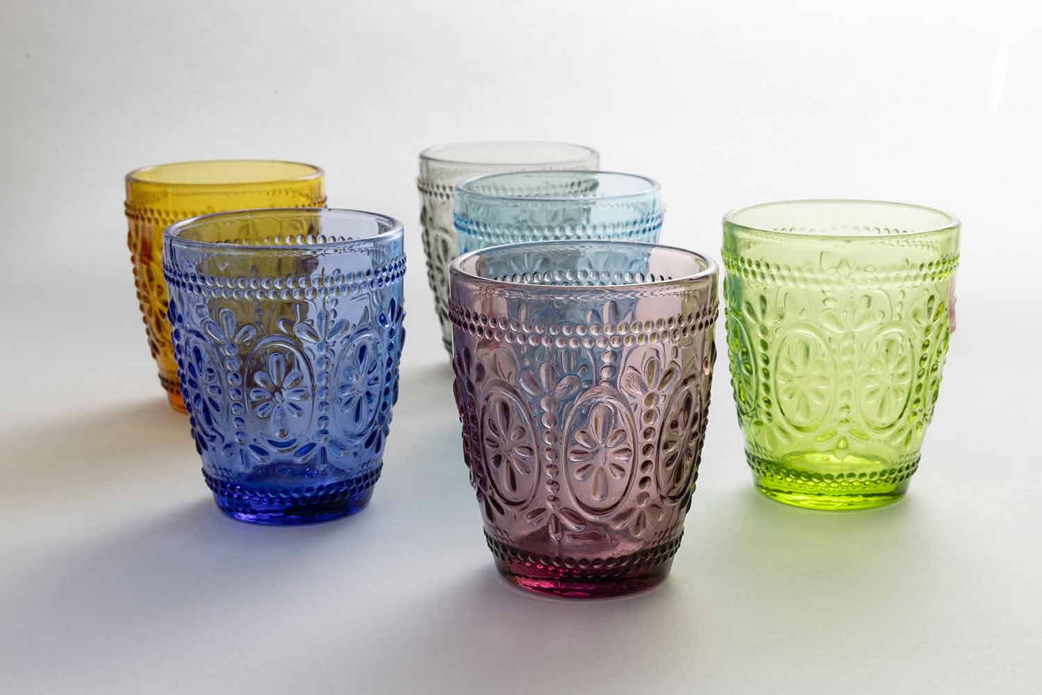 Copos decorados e coloridos de 12 peças.