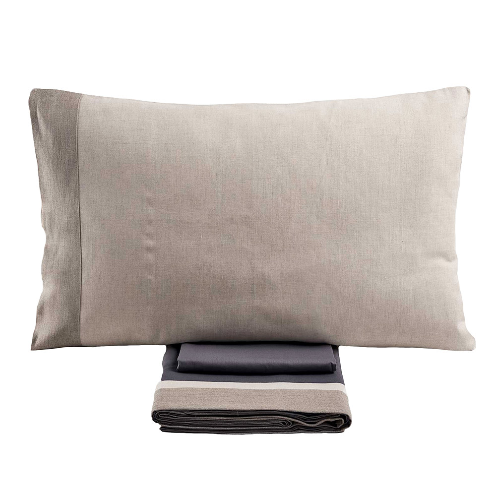 Perfeito para todos os clientes que apreciam a qualidade do Made in Italy , este conjunto de cama não é apenas uma peça de mobiliário, mas um verdadeiro investimento na qualidade do descanso. Deixe-se envolver todas as noites pela luxuosa combinação de algodão e linho, e transforme sua cama em um oásis de conforto e relaxamento.