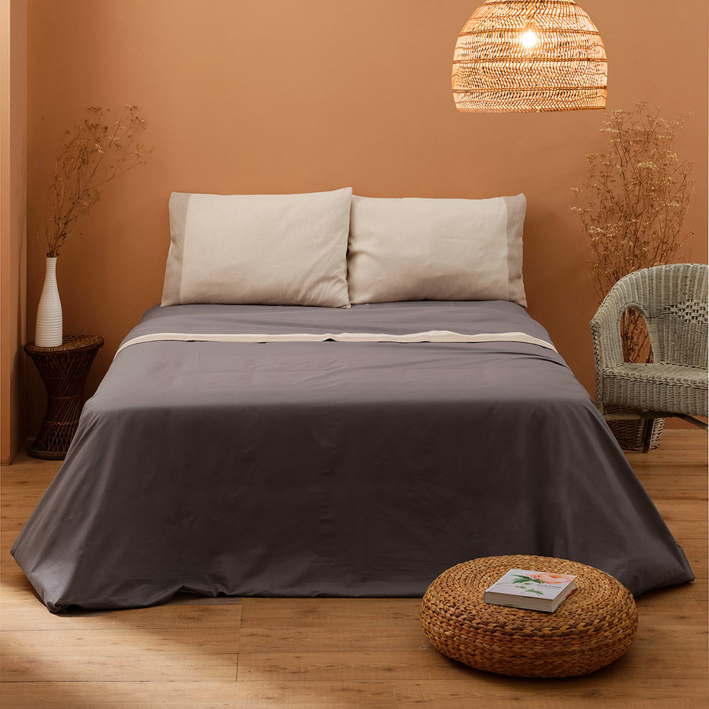 Descubra o conjunto de cama de casal feito com uma mistura fina de 90% algodão e 10% linho , uma combinação ideal para quem busca o máximo conforto aliado a um design impecável. Esta composição única combina a maciez e a respirabilidade do algodão com a resistência e o frescor natural do linho, oferecendo uma experiência de sono superior em todas as estações.