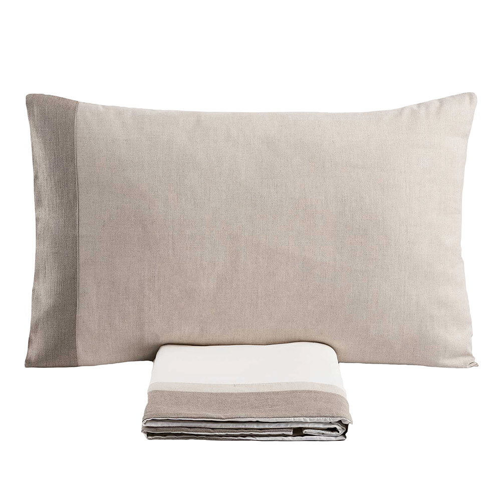 Perfeito para todos os clientes que apreciam a qualidade do Made in Italy , este conjunto de cama não é apenas uma peça de mobiliário, mas um verdadeiro investimento na qualidade do descanso. Deixe-se envolver todas as noites pela luxuosa combinação de algodão e linho, e transforme sua cama em um oásis de conforto e relaxamento.