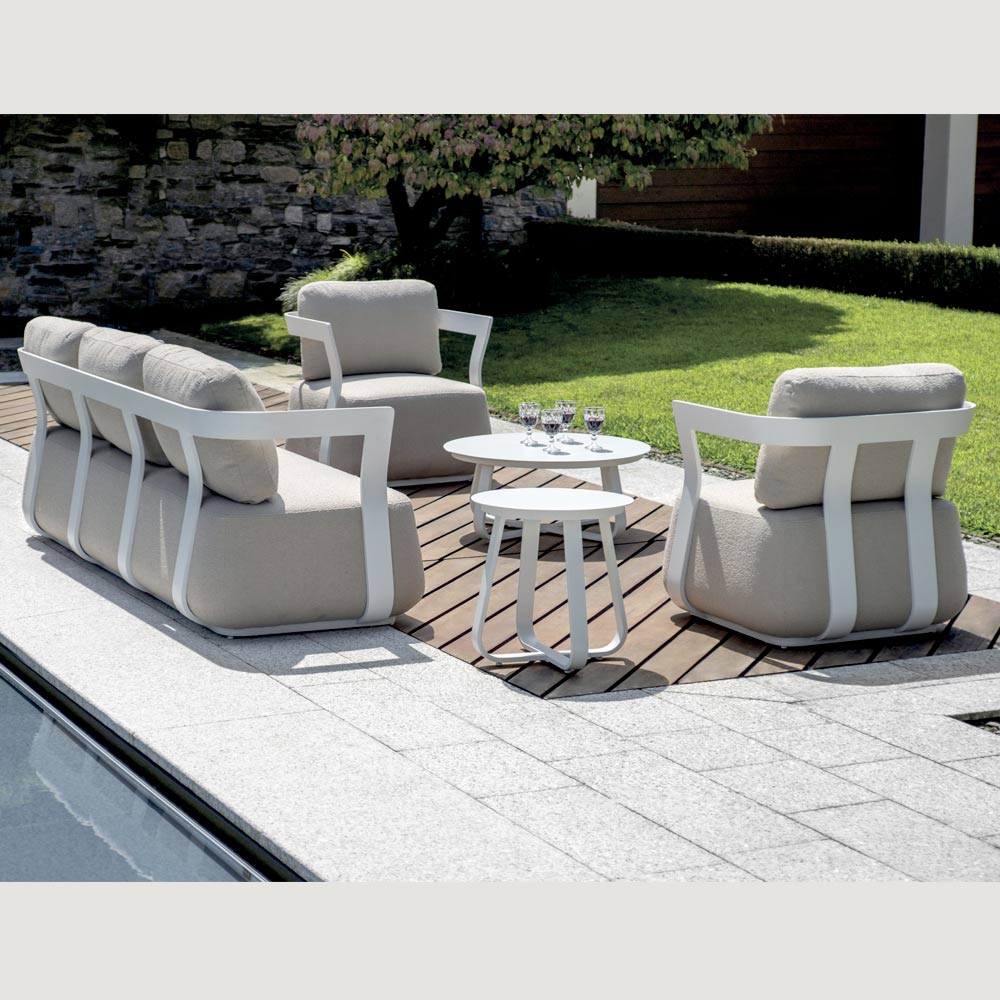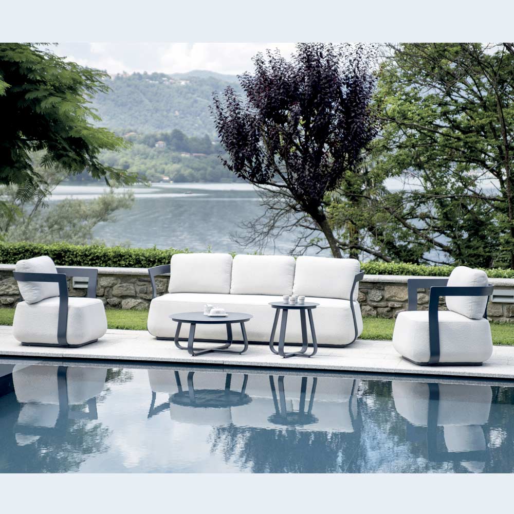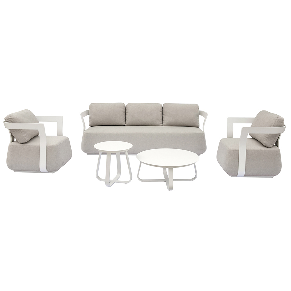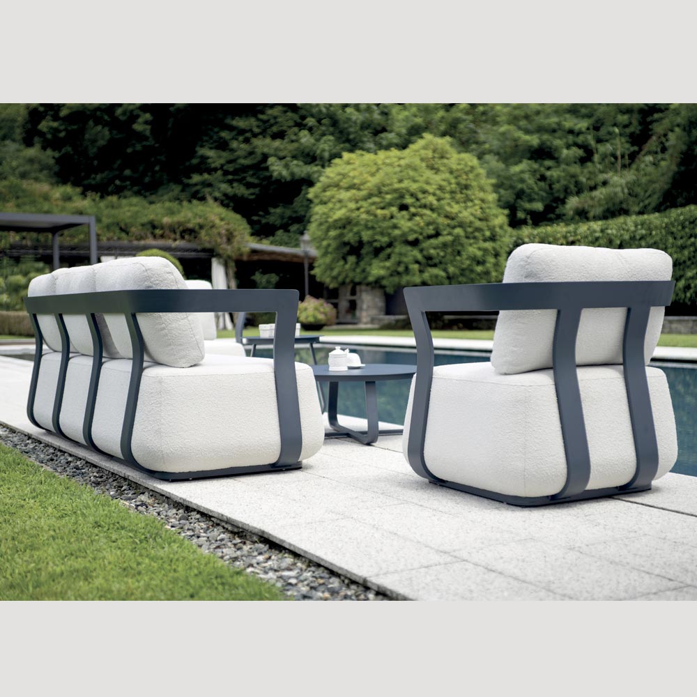 A estrutura de alumínio garante leveza, solidez e durabilidade, mantendo um visual elegante e contemporâneo. As almofadas altas, macias e envolventes proporcionam conforto superior e suporte ideal, convidando você a relaxar em total conforto.
