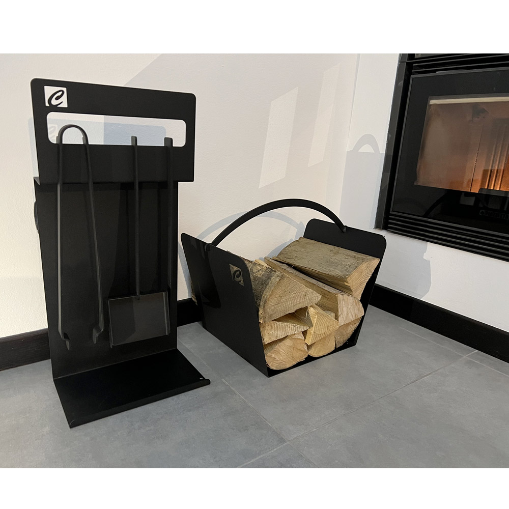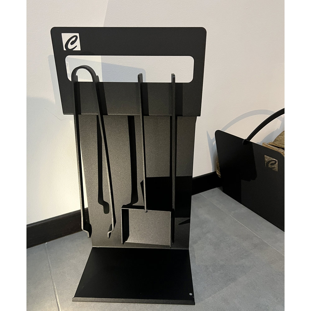 Conjunto de ferramentas de design para lareira interior em aço preto, fabricado na Itália.