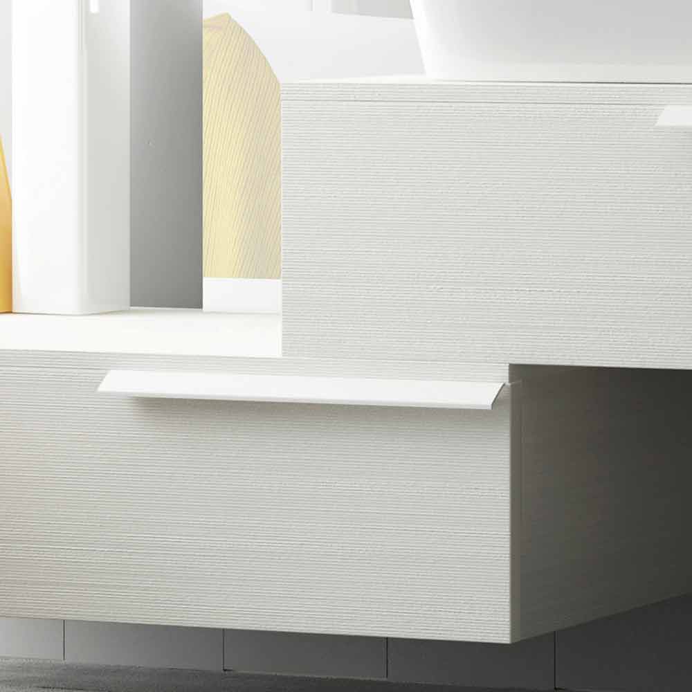Conjunto de móveis de casa de banho feliz, madeira laqueada, acabamento brilhante. Design moderno, feito na Itália.