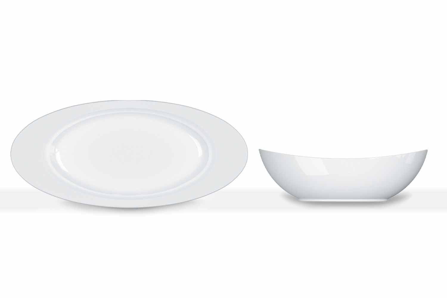 Conjunto de servir de design oval moderno em porcelana branca, 2 peças.
