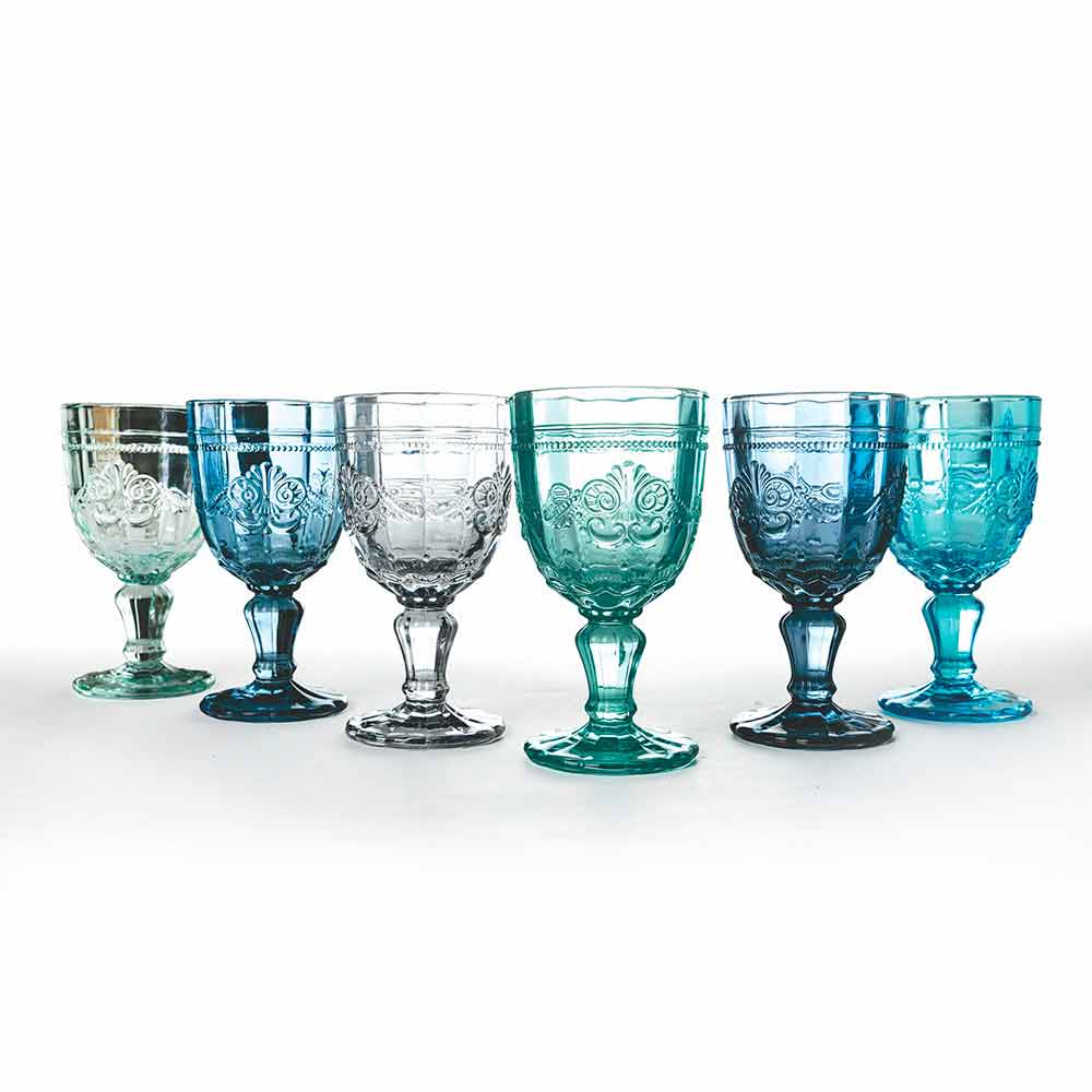 Taças de vinho coloridas em taça com decorações orientais, 12 peças.