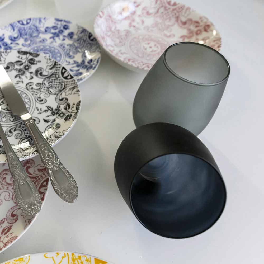 Uma linha de taças de sabor étnico e altamente glamoroso, com cores vivas , capazes de embelezar o conjunto e criar um jogo de luz único e delicado. Este serviço é capaz de nos transportar ao longo dos anos, revivendo o sabor mais genuíno e autêntico do passado, com o sabor retro revisitado mas em tom moderno. A mistura de cores intensas com detalhes requintados dão vida a uma mise en place altamente elegante e requintada , capaz de conquistar todos os hóspedes com o seu estilo único e delicado.