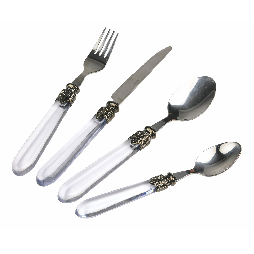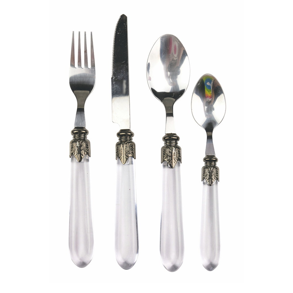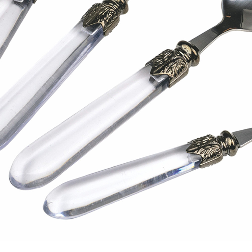 Talheres de aço e cabo de plástico transparente, 24 peças.