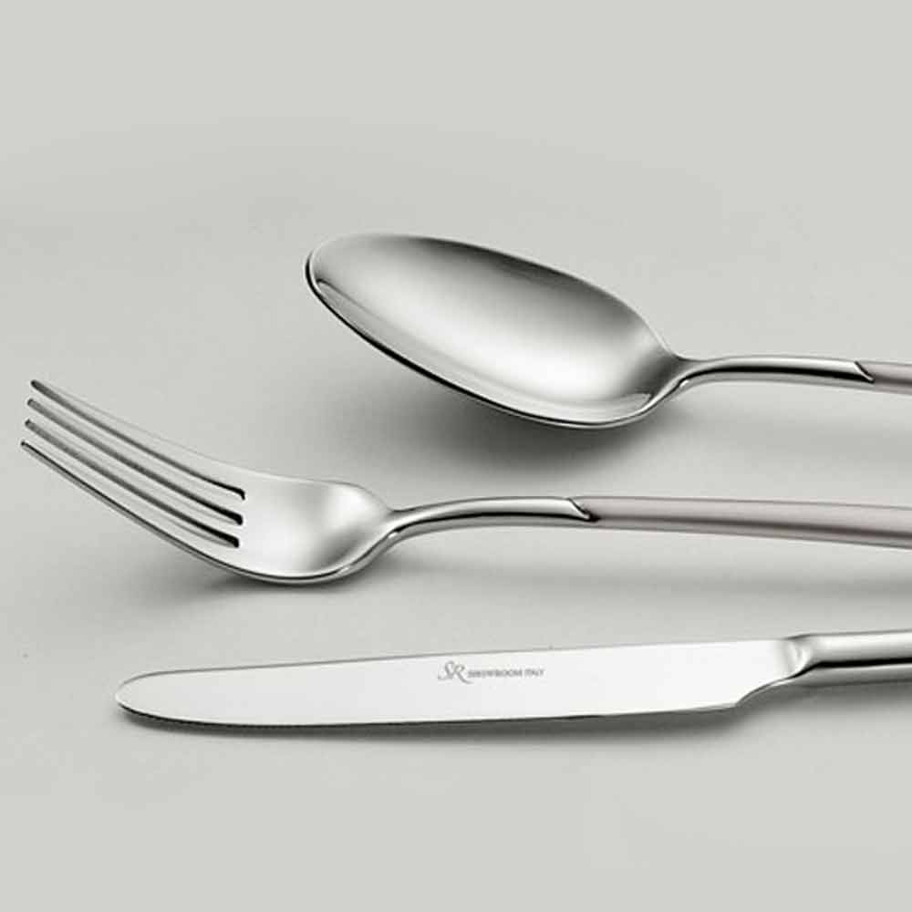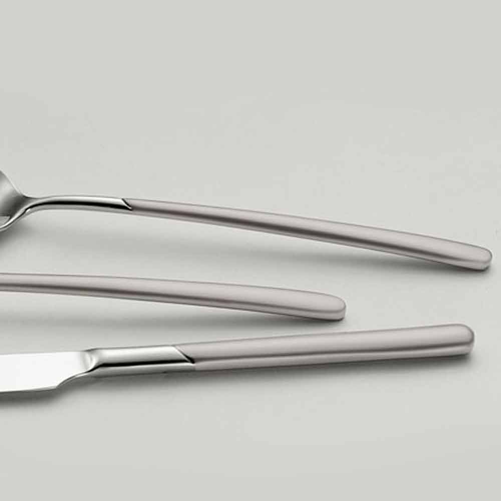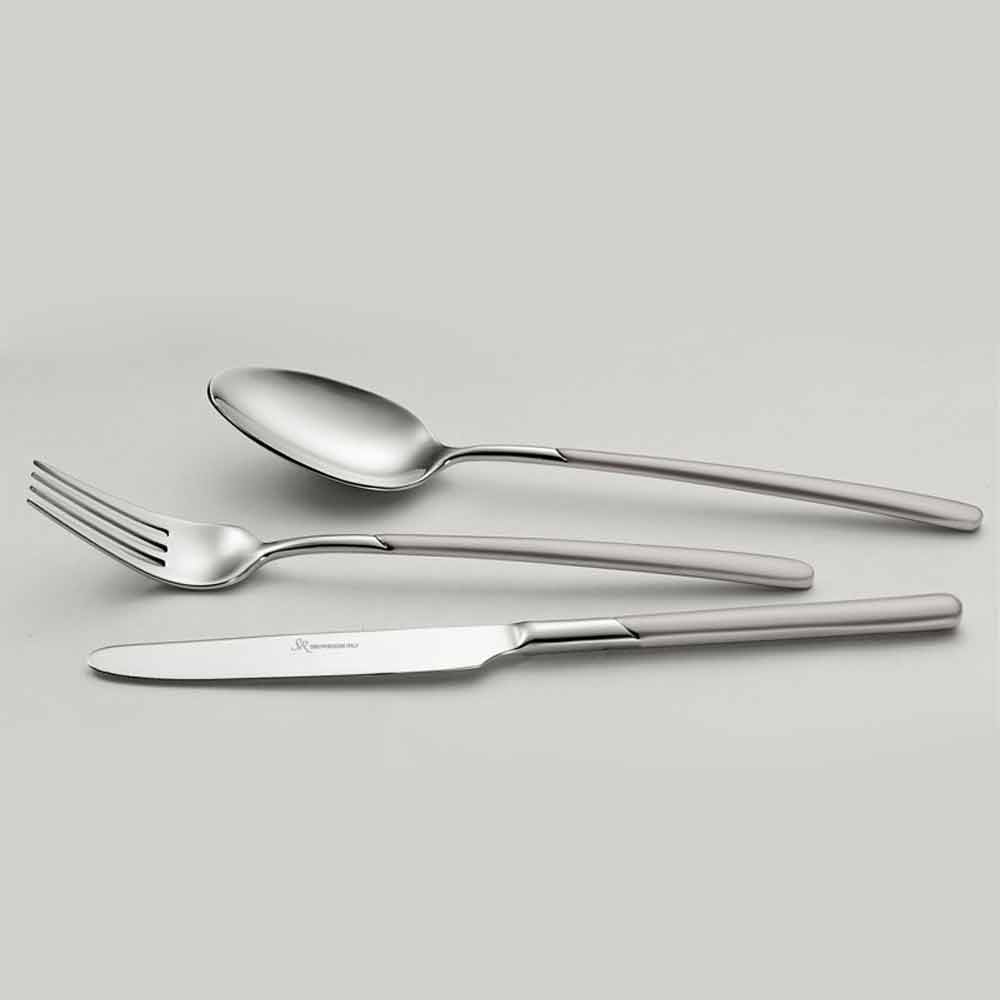 Conjunto de 24 talheres em aço inoxidável polido com cabo jato de areia de design made in Italy.