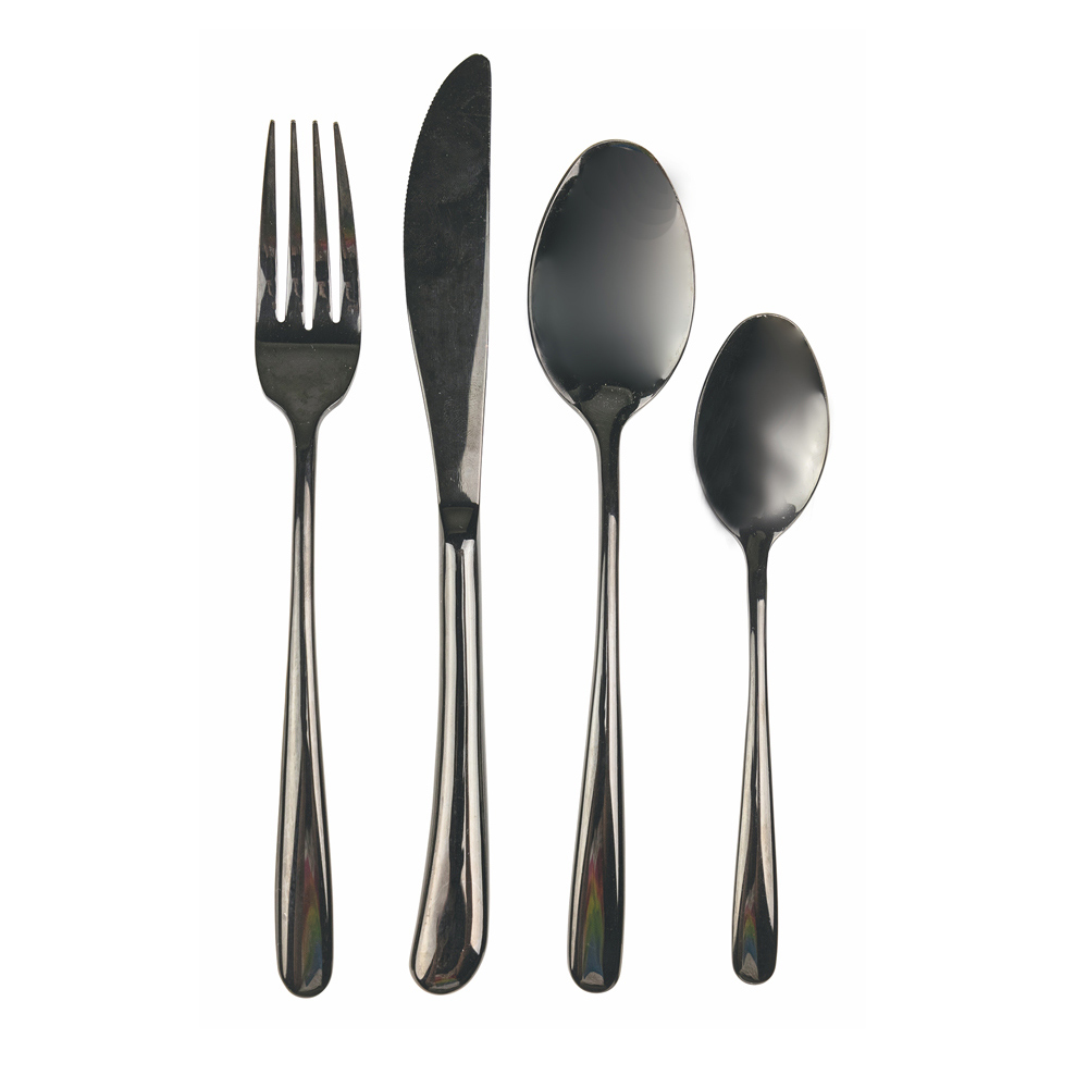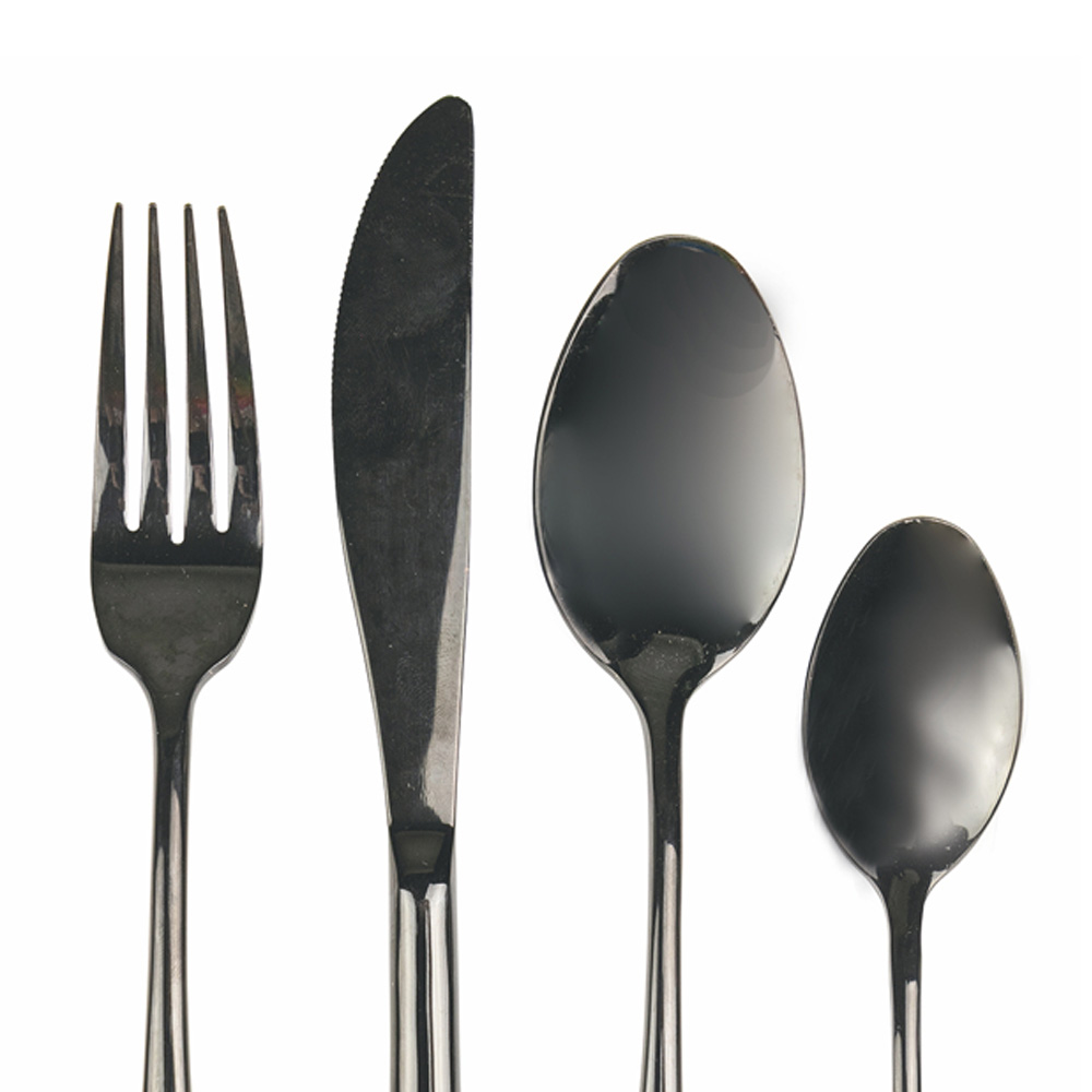 Conjunto de talheres de aço preto brilhante com design arredondado 24 peças - gota