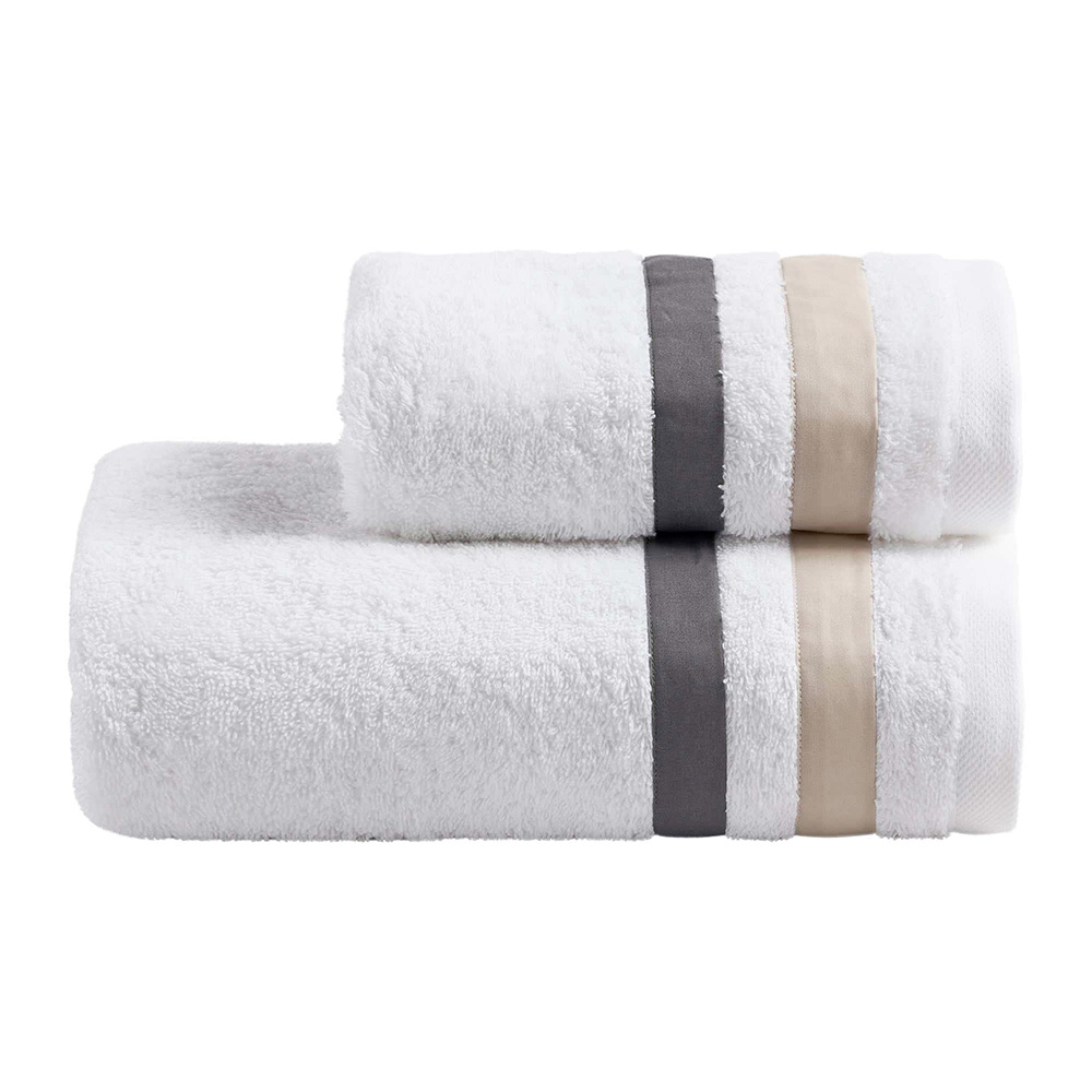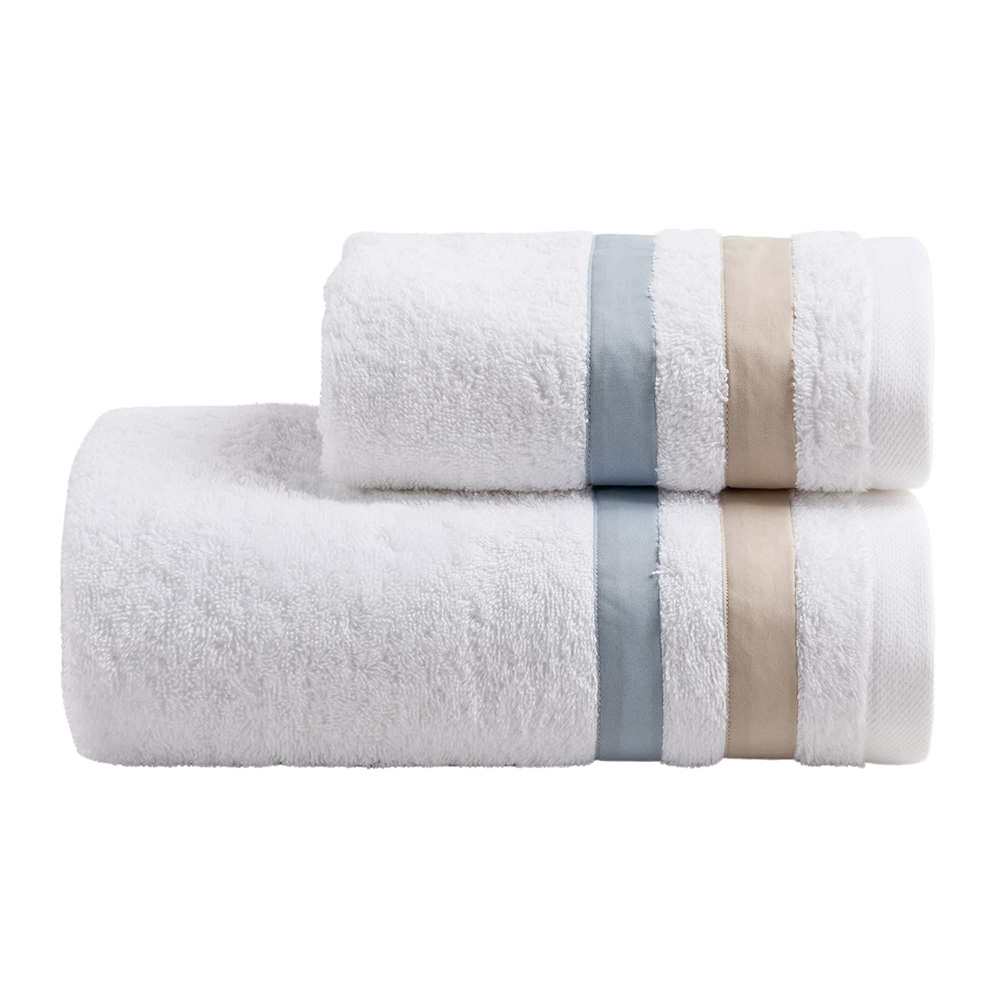 Conjunto de toalha de rosto + toalha de visitas em felpa de algodão puro com folho duplo em percal de algodão puro
