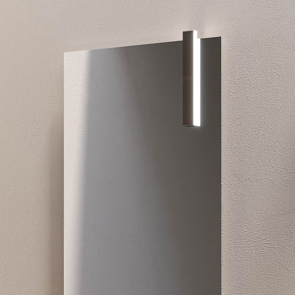 O espelho de 160x60 amplia a luminosidade do ambiente, enquanto a luminária LED com acabamento cromado garante uma iluminação precisa e elegante, ideal para a área da pia.