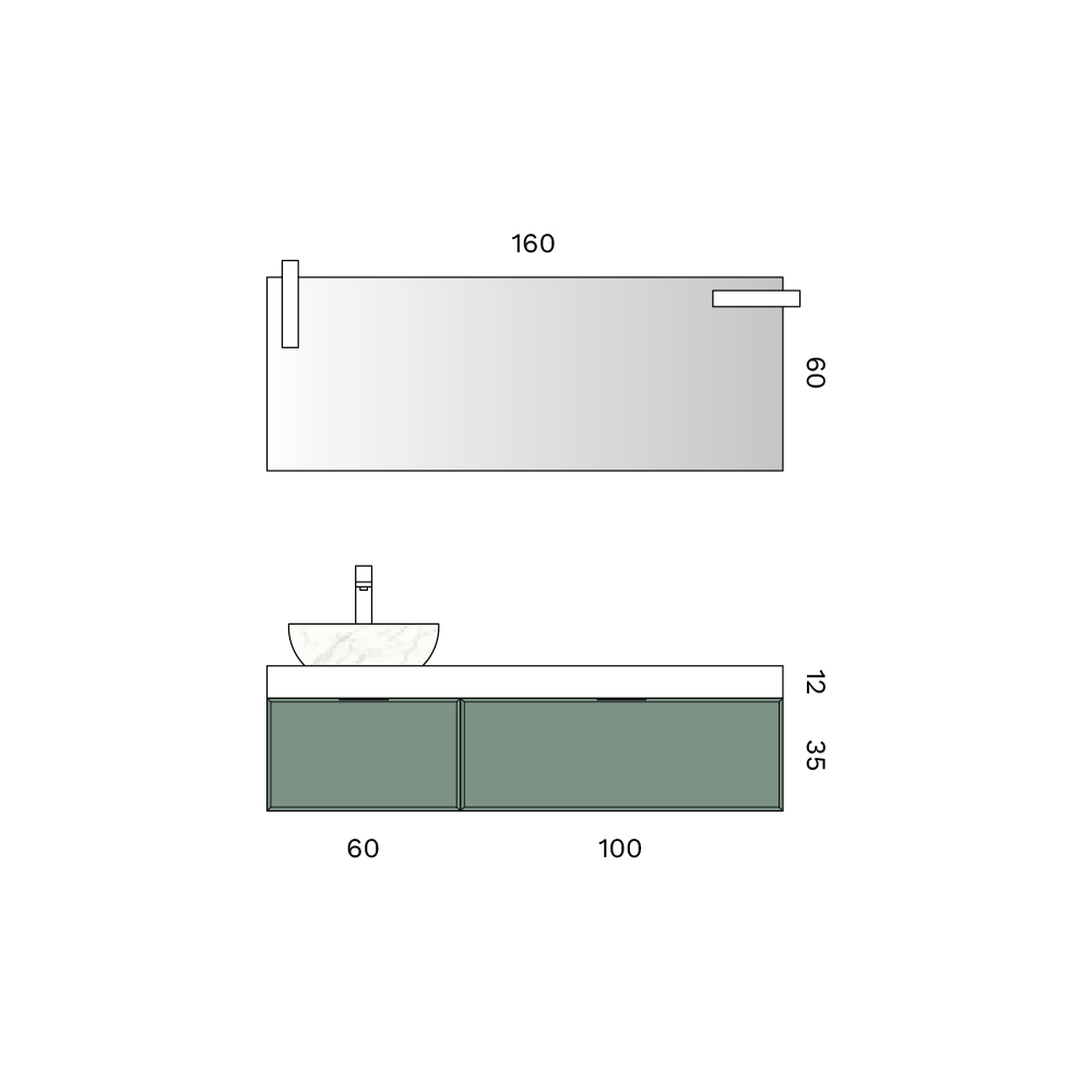 O armário de banheiro suspenso com gavetas duplas oferece amplo espaço de armazenamento e máxima funcionalidade para o dia a dia. O acabamento em tom sálvia confere um toque natural e sofisticado, ideal para banheiros modernos e elegantes .