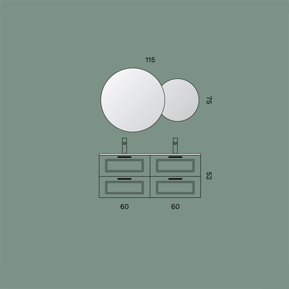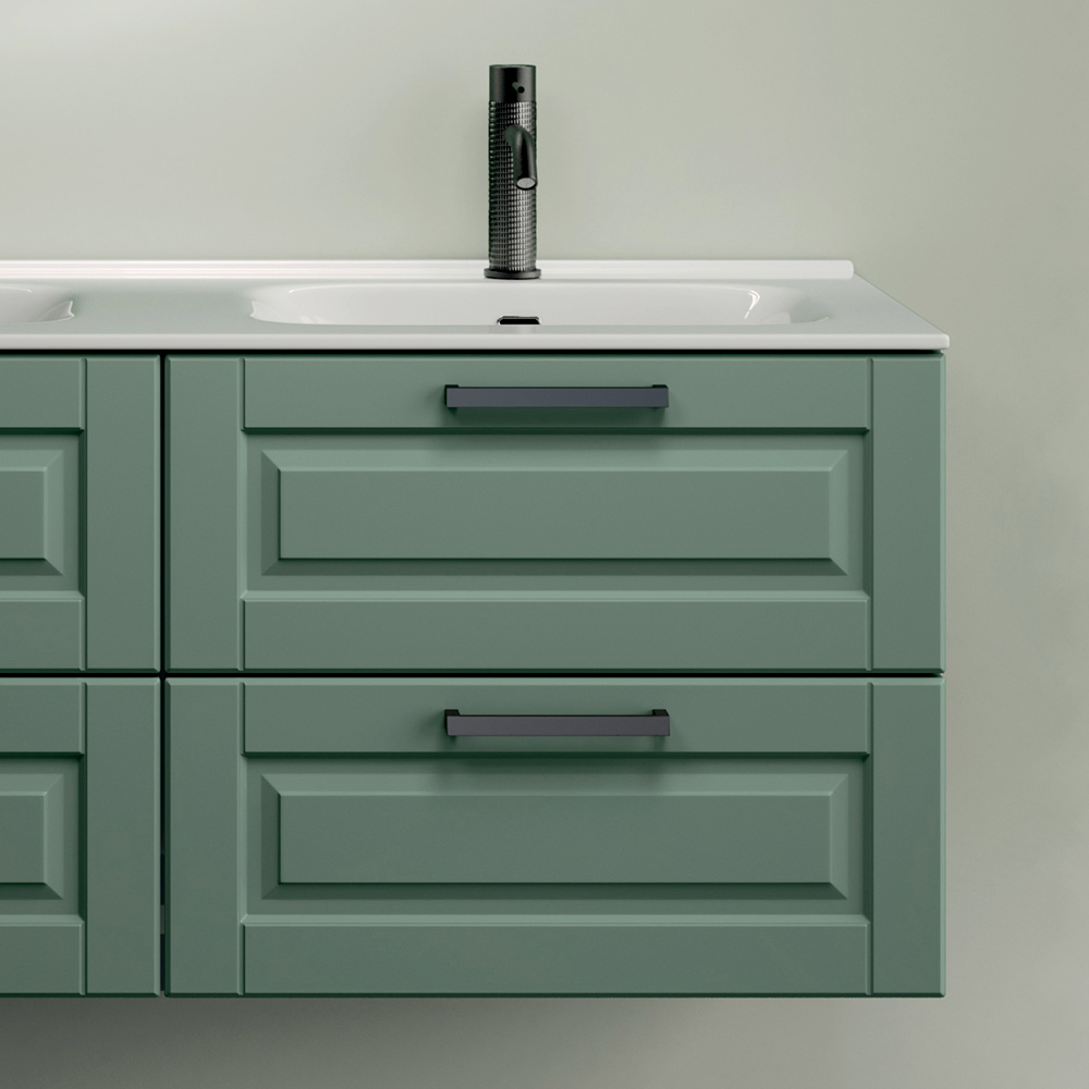 Uma composição de banheiro com um caráter refinado e contemporâneo, definida pelo elegante acabamento em tom sálvia fosco , uma tonalidade sofisticada que confere personalidade e harmonia ao ambiente.