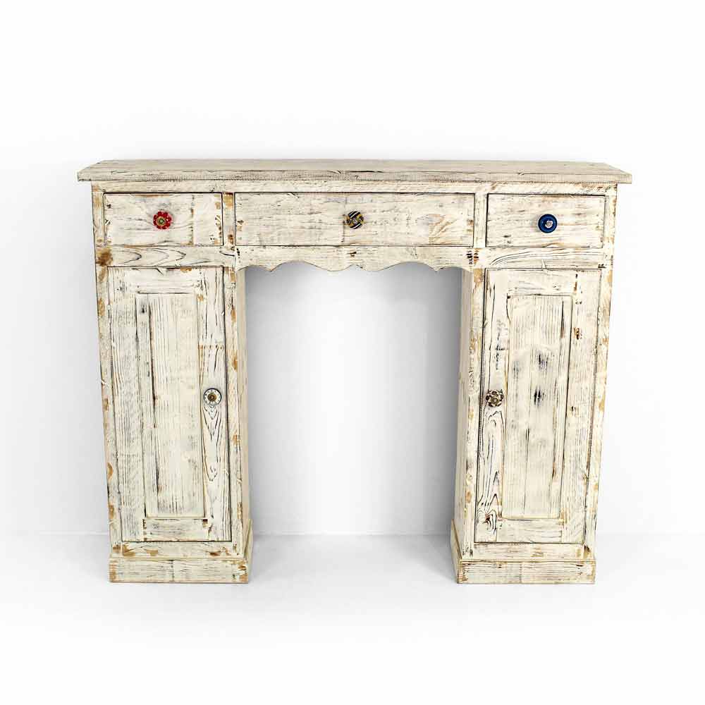 Consola em madeira maciça de abeto pintada com terra branca envelhecida, artigo de luxo Made in Italy.
