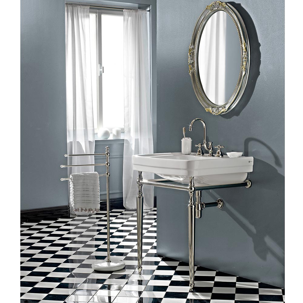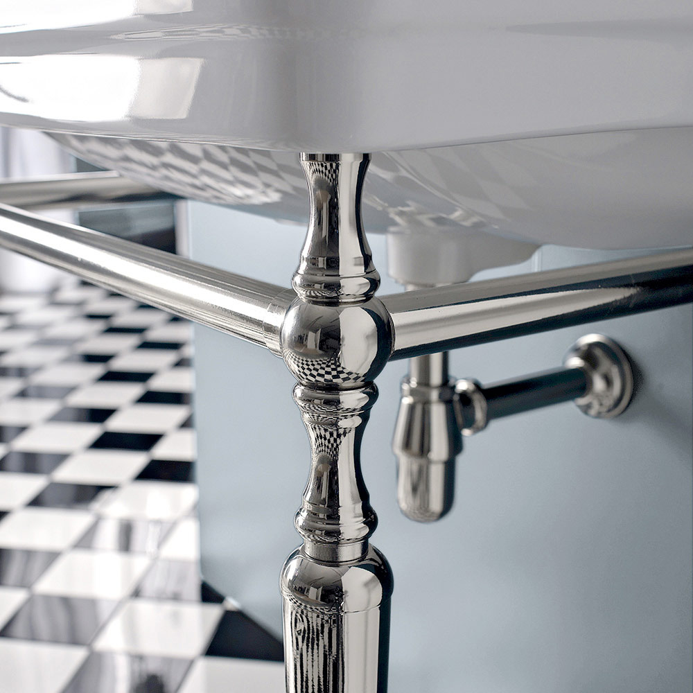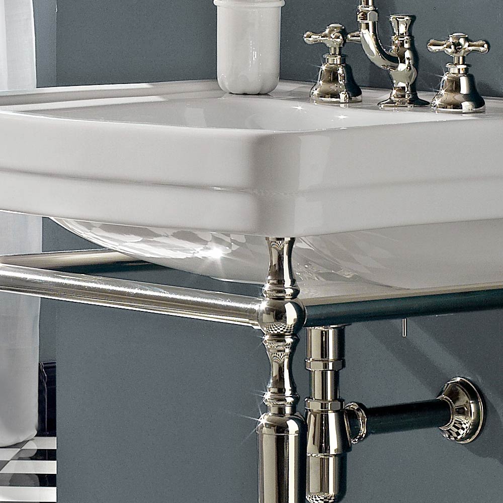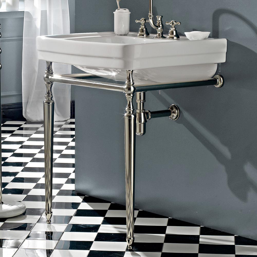A combinação certa de cerâmica e metal torna esse console ideal para decorar qualquer estilo de banheiro.