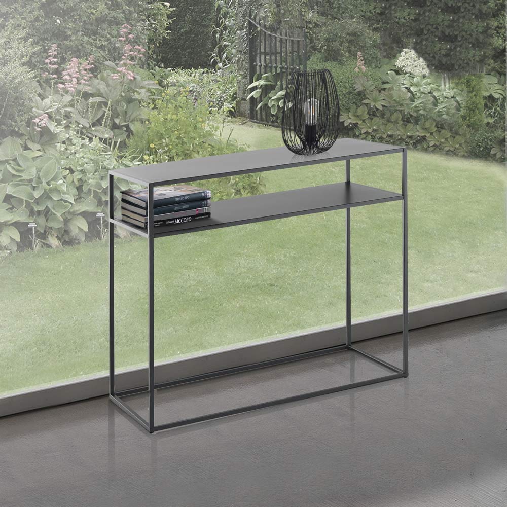 aço pintado de antracite mate e tampo de 1,5 cm de altura e prateleira em