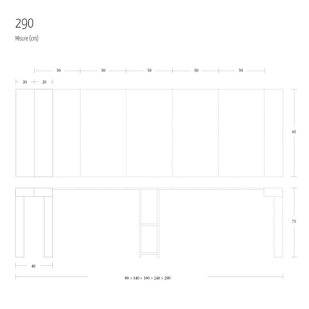 - L 40/90/140/190/240/290 XP 95 XH 75 cm - 5 extensões.