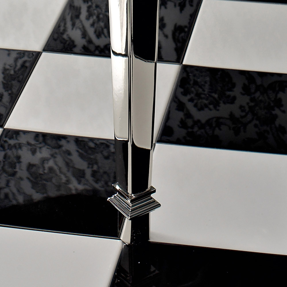 - tampo em cerâmica branca e base em metal níquel preto;