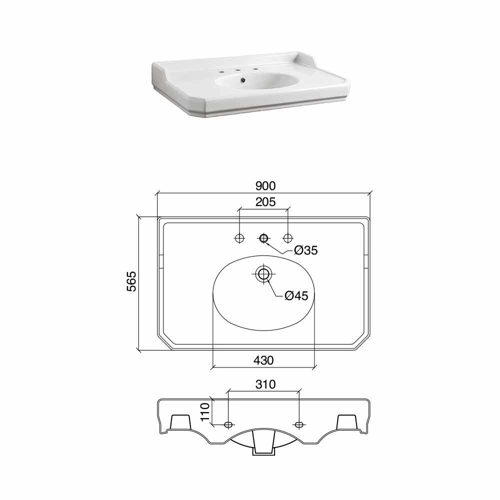 Nausica é um console elegante composto por um lavatório de cerâmica com um rebaixo de 900 mm de comprimento, com