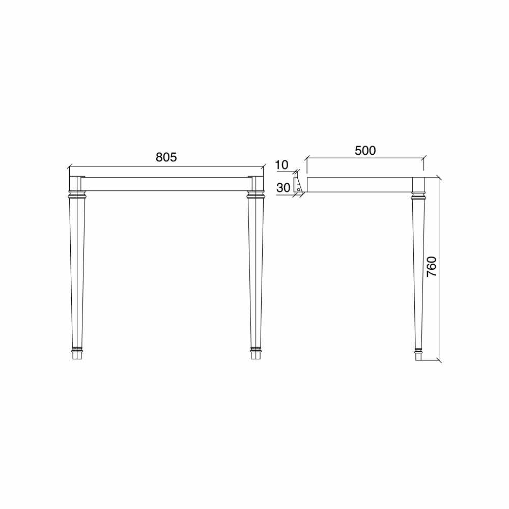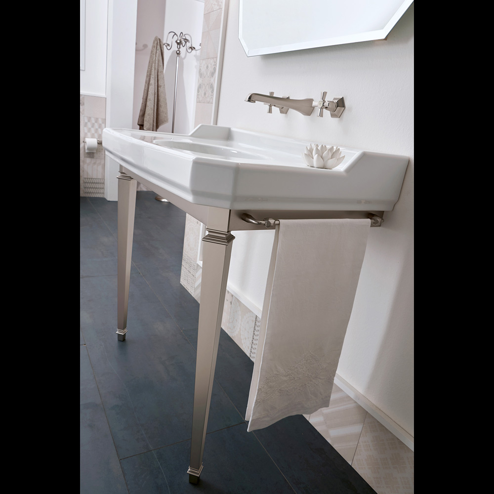 Console de banheiro de cerâmica branca estilo vintage com pés de metal Nausica, fabricado na Itália.