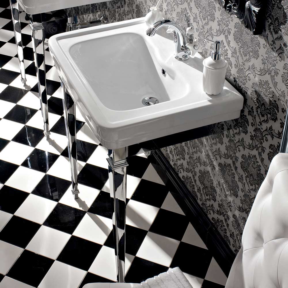 Console de banheiro de cerâmica fabricado na Itália com pés de metal, estilo vintage, Marwa.