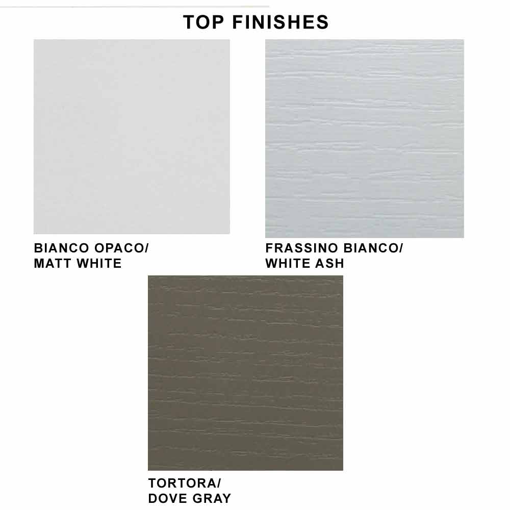 aço lacado branco ou grafite. Acabamentos disponíveis para o topo:- tampo em melamina lacada a branco mate;