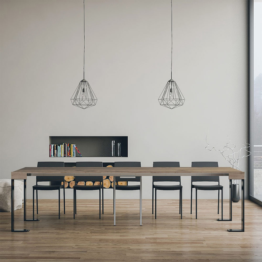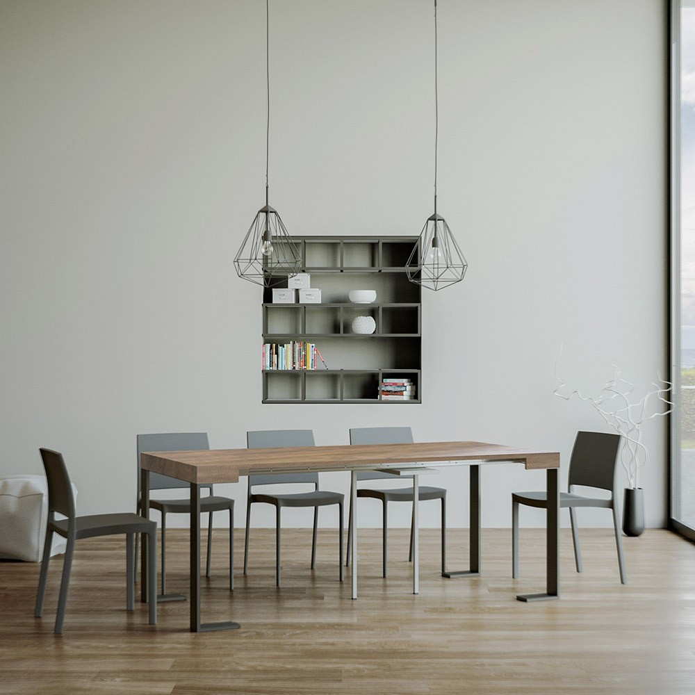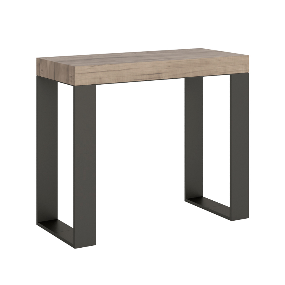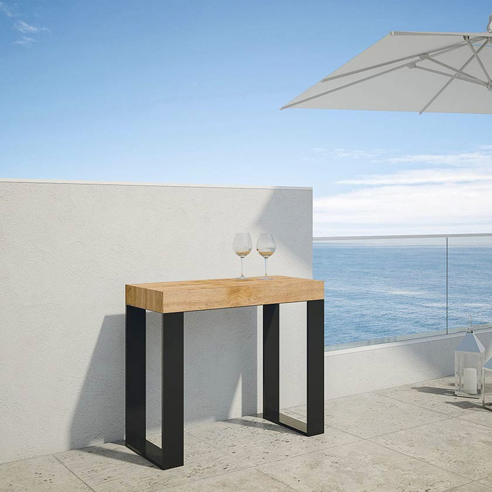 Mesa de consola extensível em madeira folheada e ferro, Made in Italy