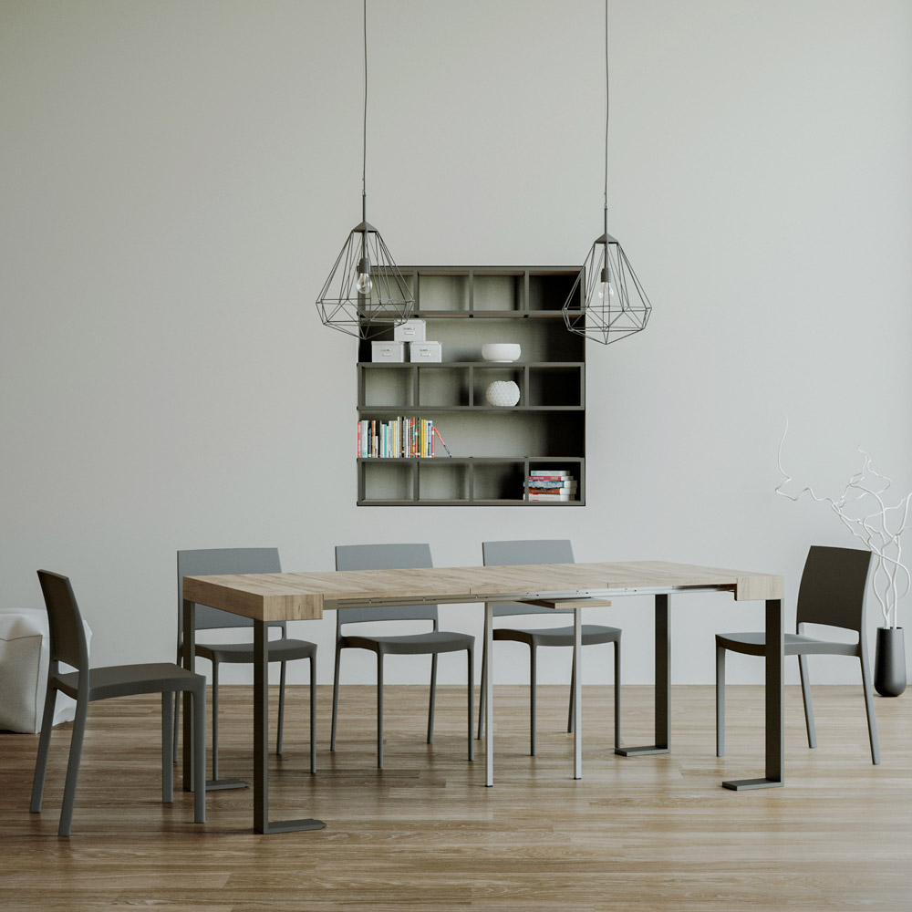 A principal caraterística desta mesa de consola é a sua capacidade de extensão, permitindo transformá-la de uma peça de mobiliário fina e discreta numa mesa mais espaçosa e aconchegante. Isto torna-a ideal para espaços pequenos ou multifuncionais, onde cada centímetro é precioso.