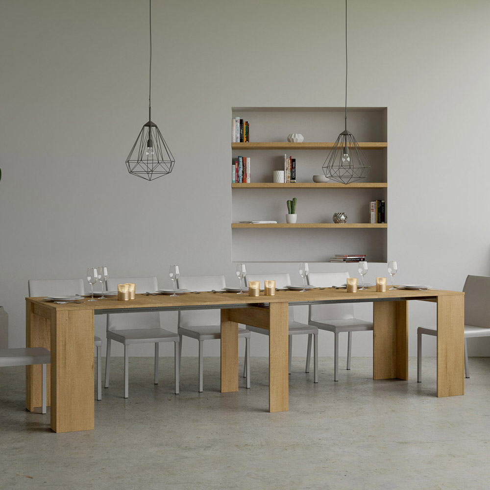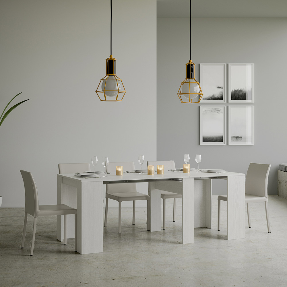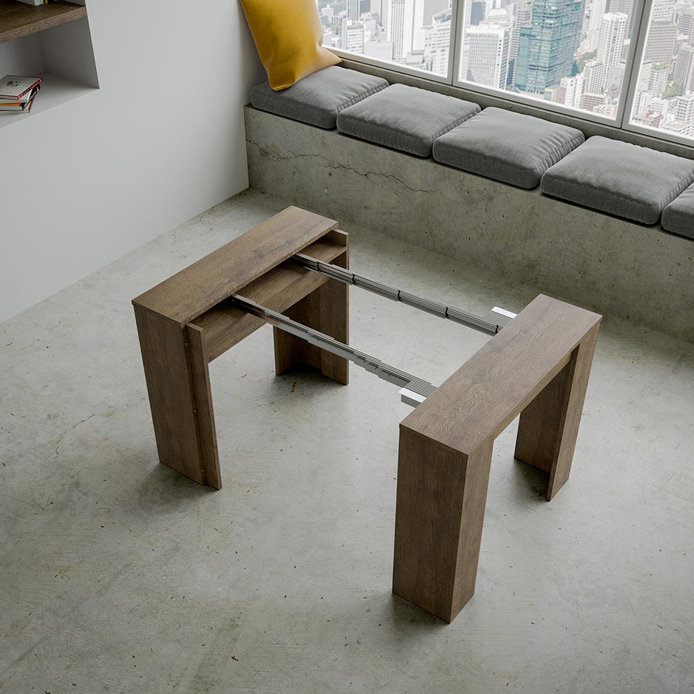 O mecanismo extensível é um exemplo de inteligência espacial: a mesa de console pode ser facilmente transformada em uma mesa maior, tornando-a uma solução versátil para pequenos apartamentos ou salas que exigem móveis multifuncionais. È ideal para quem aprecia a beleza funcional e o design inteligente que economiza espaço sem sacrificar o estilo.