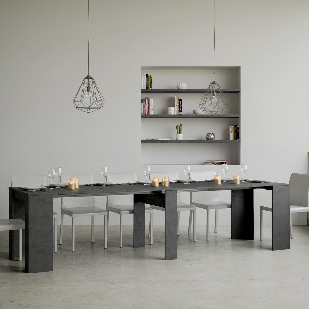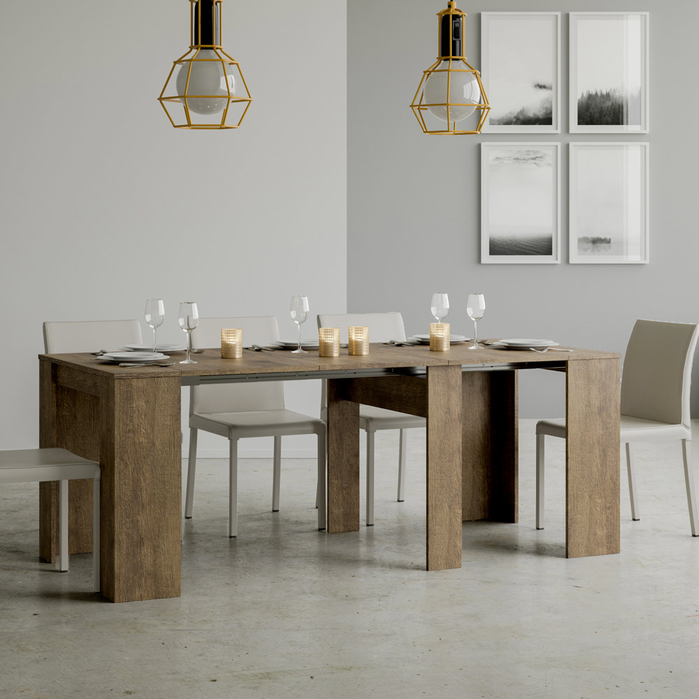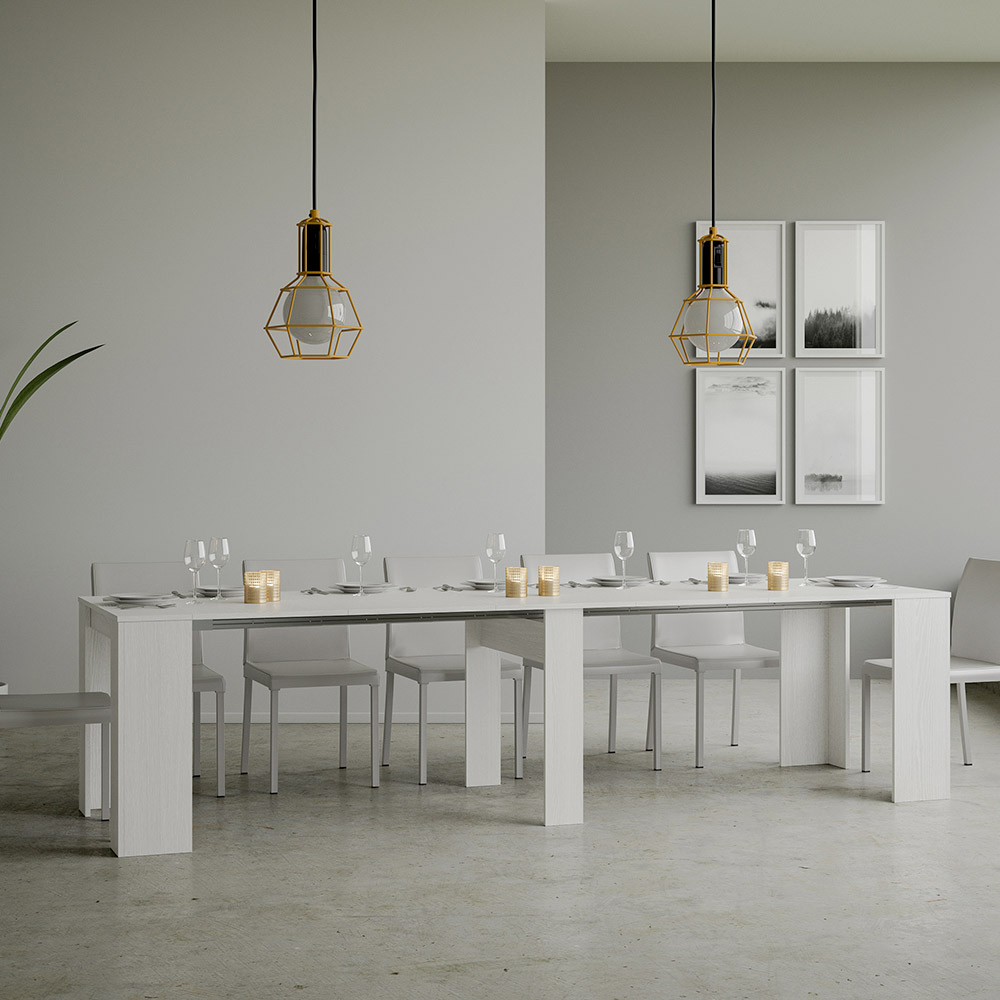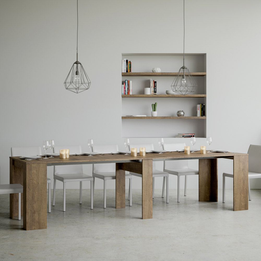 O mecanismo extensível é um exemplo de inteligência espacial: a mesa de console pode ser facilmente transformada em uma mesa maior, tornando-a uma solução versátil para pequenos apartamentos ou salas que exigem móveis multifuncionais. È ideal para quem aprecia a beleza funcional e o design inteligente que economiza espaço sem sacrificar o estilo.
