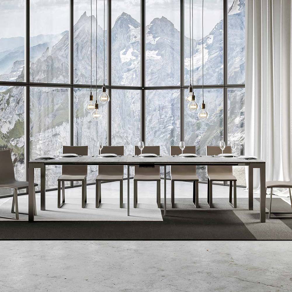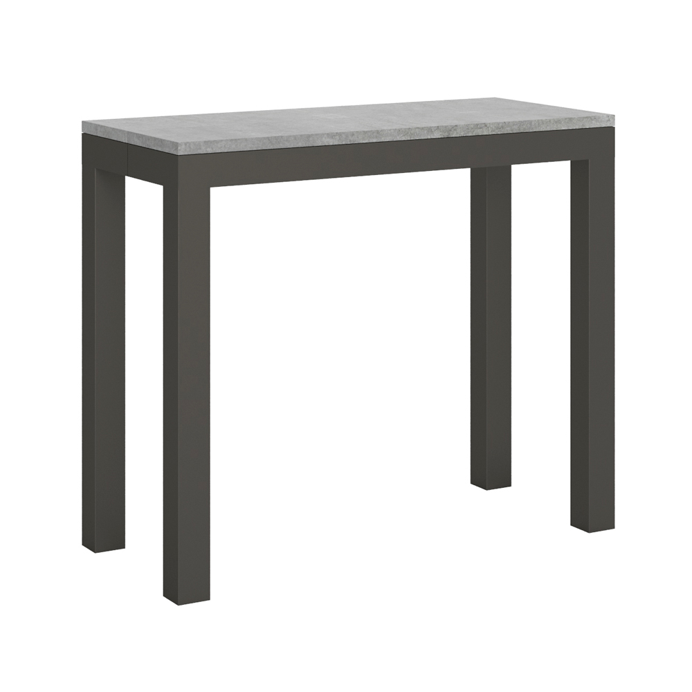Esta mesa de consola extensível combina um design moderno e limpo com a máxima eficiência espacial. A moldura ampla e sólida feita de ferro cortado a laser de alta precisão forma a estrutura de suporte, e uma moldura de ferro suporta um tampo de madeira refinado que se estende harmoniosamente, revelando a possibilidade de uso duplo: elegante e discreto quando fechado, espaçoso e acolhedor quando aberto.