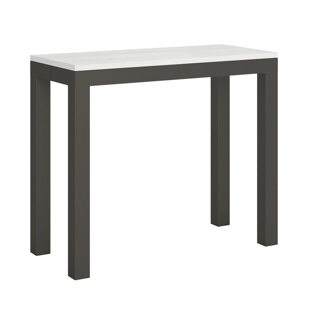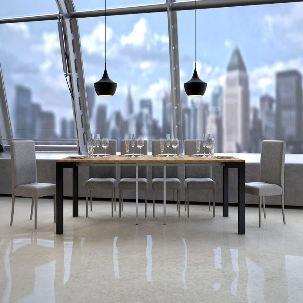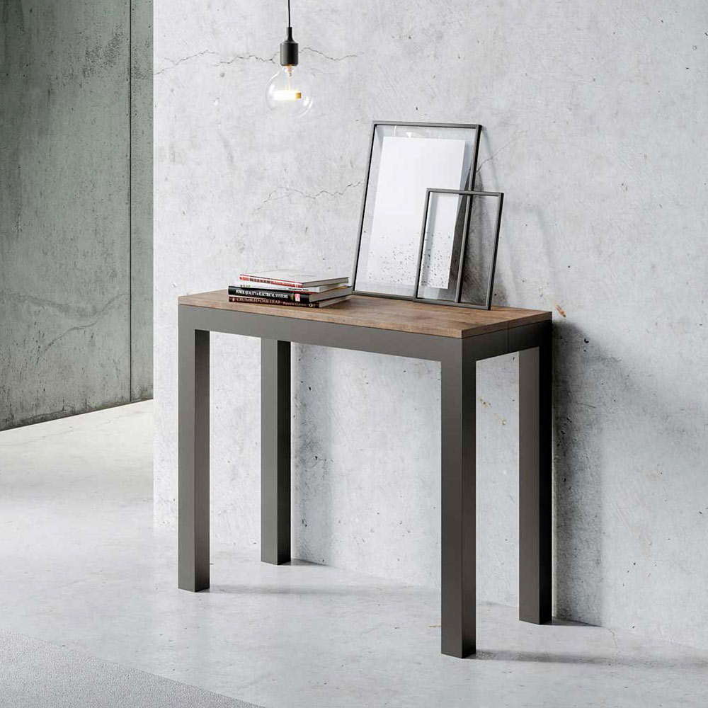 Ideal para quem tem espaço limitado, mas não quer renunciar à possibilidade de hospitalidade, esta mesa de console se transforma facilmente em uma mesa de jantar, pronta para receber momentos de convívio. O seu estilo minimalista torna-a perfeitamente combinável com qualquer tipo de decoração, desde o contemporâneo até toques mais tradicionais.