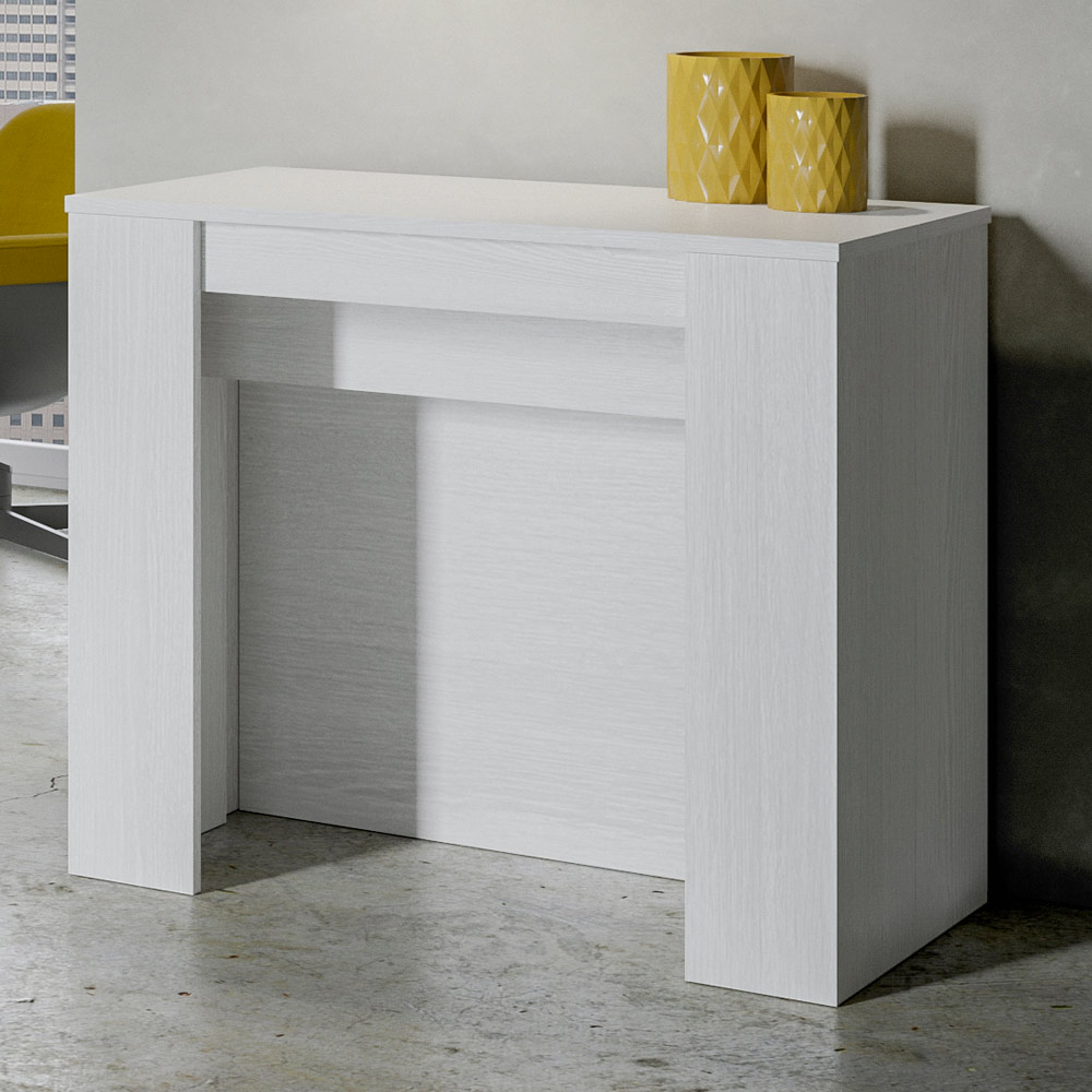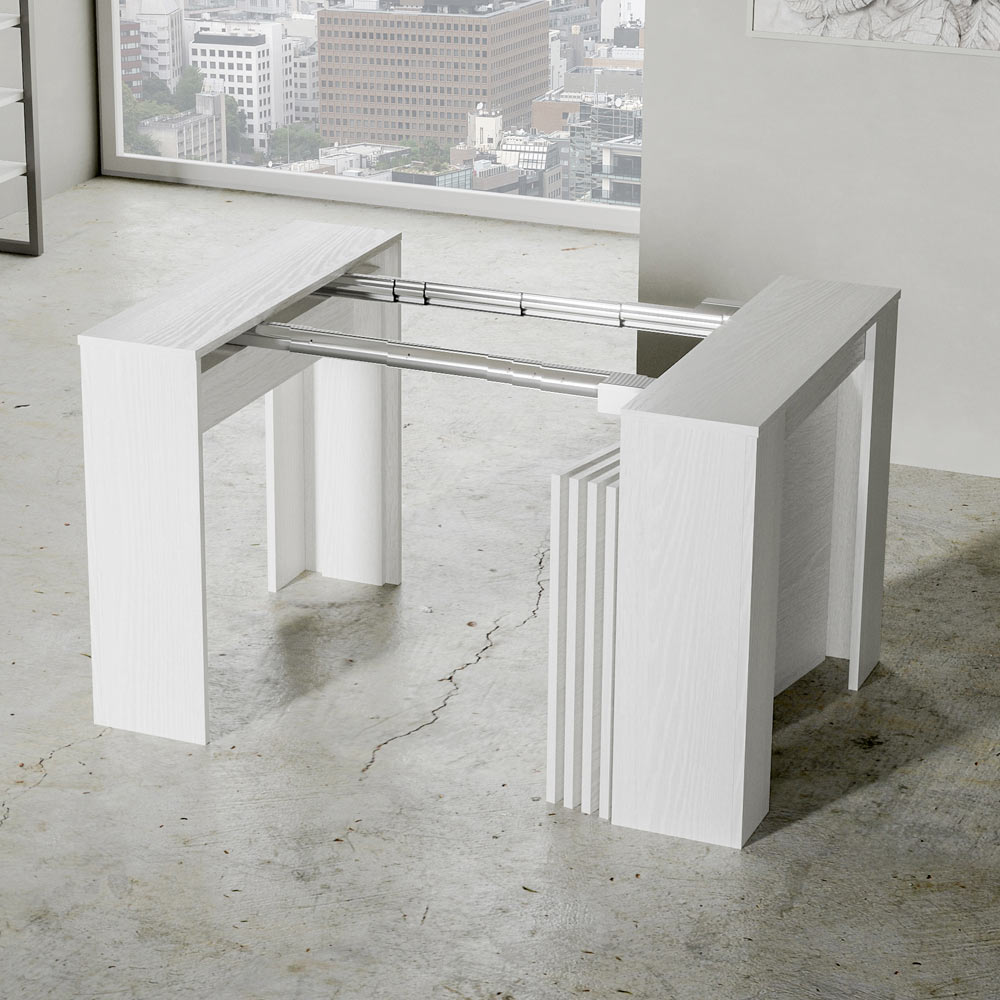 Deixe-se encantar pela pureza e pela funcionalidade desta mesa de console extensível, uma peça de mobiliário que representa a quintessência da versatilidade moderna.