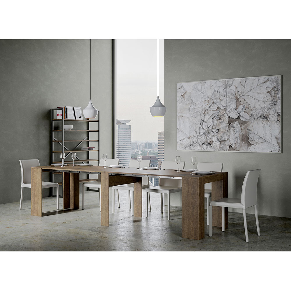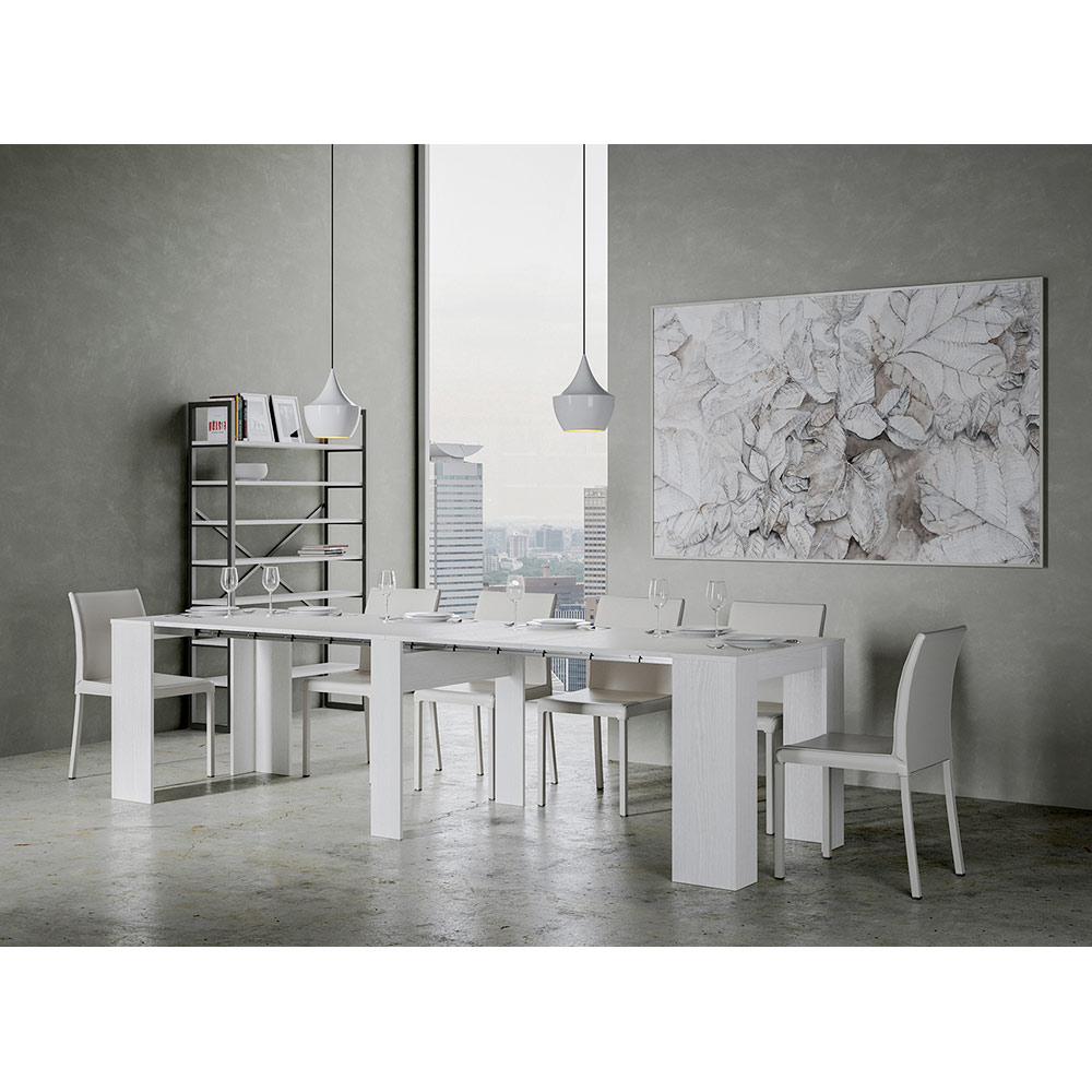 A sua estrutura robusta e durável è concebida para suportar o uso diário, enquanto o seu estilo neutro combina com elegância qualquer esquema de cores ou design de interiores. Esta mesa de consola não é apenas uma peça de mobiliário, mas uma afirmação de estilo e inteligência de design, testemunhando um gosto refinado pelo design contemporâneo e uma apreciação pela qualidade artesanal. Idealmente colocada numa entrada, sala de estar ou escritório, esta mesa de consola extensível é um convite para experimentar a sua casa de uma forma dinâmica e criativa.