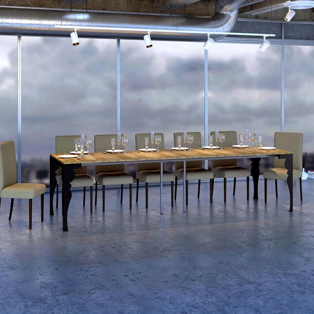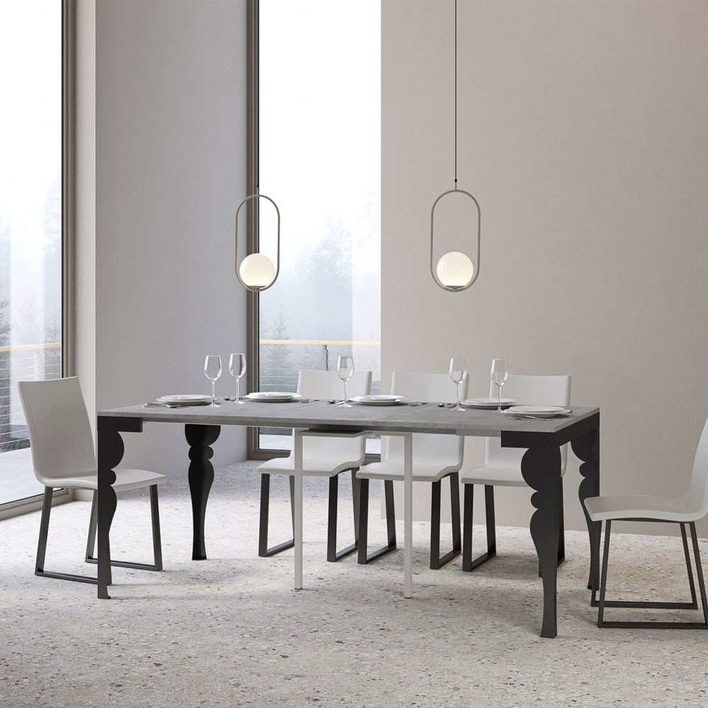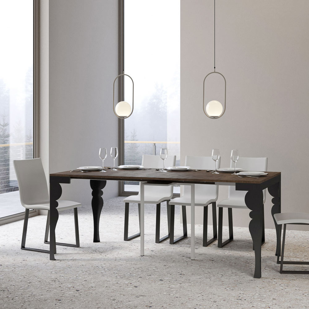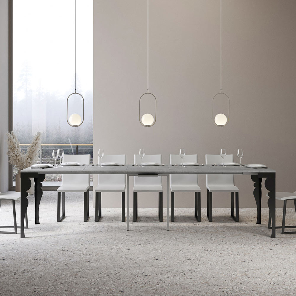 O contraste entre o cinzento antracite das pernas e a madeira do tampo cria um diálogo visualmente estimulante, tornando esta peça de mobiliário uma escolha sofisticada para qualquer divisão. Perfeita como móvel de entrada ou como uma superfície adicional numa sala de estar, a mesa de consola transforma-se com facilidade, estendendo-se para se tornar a peça central de uma sala de jantar, pronta para acolher momentos memoráveis.