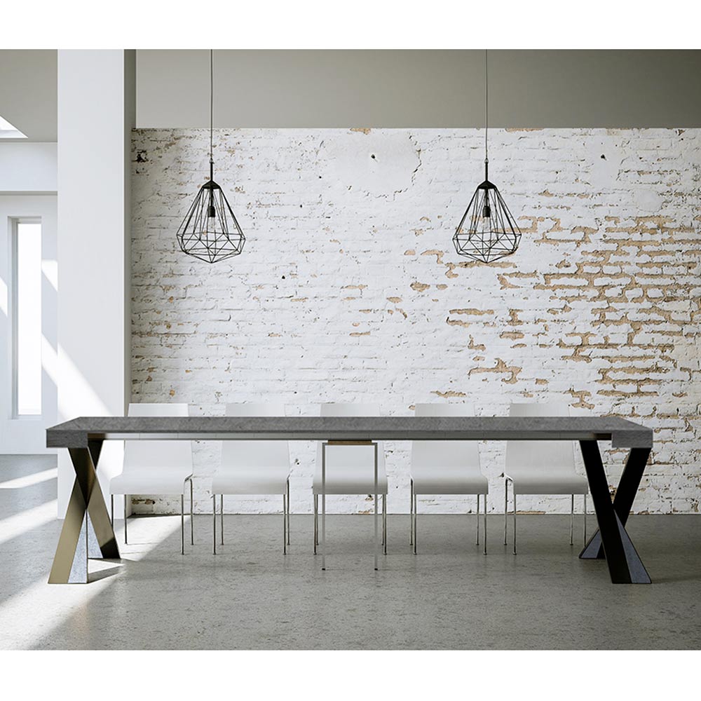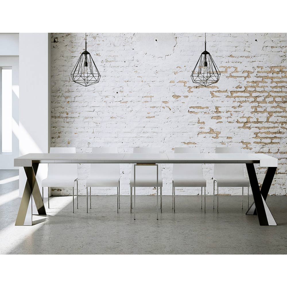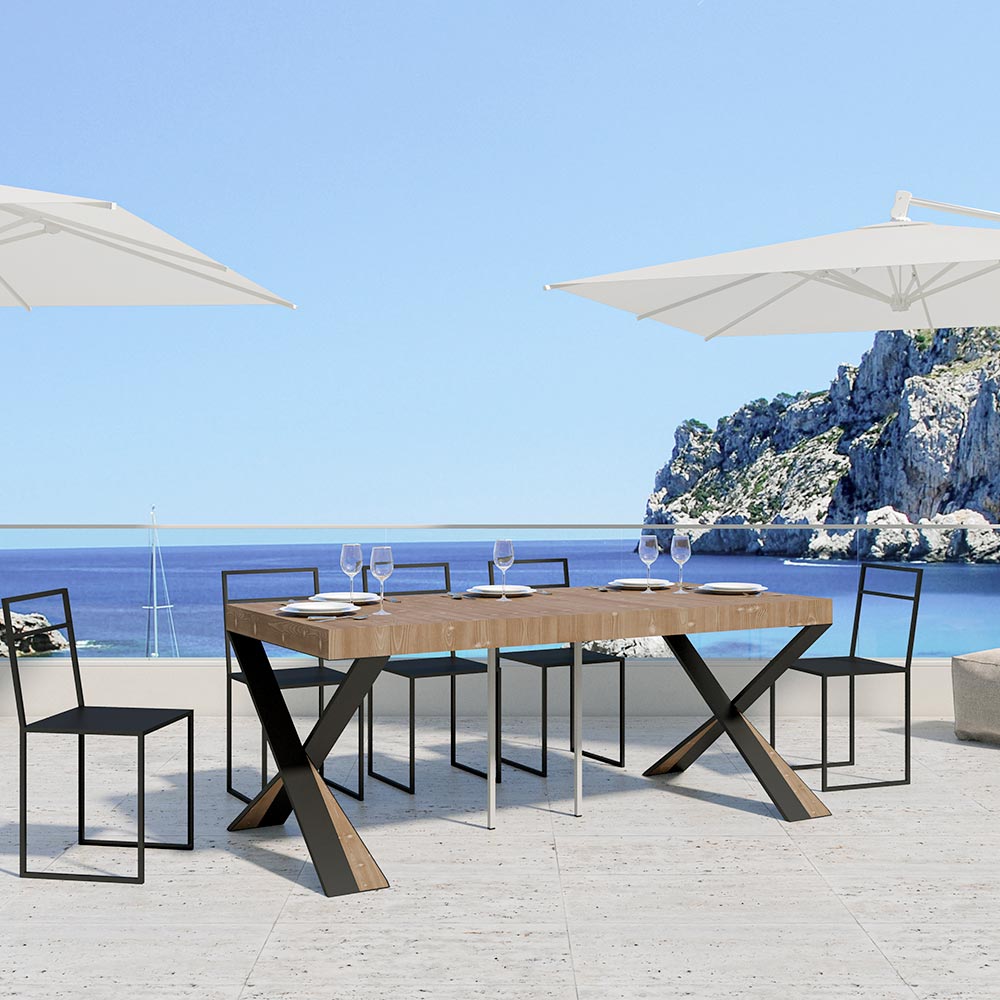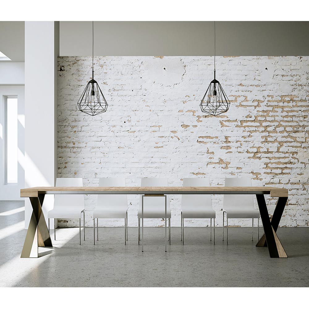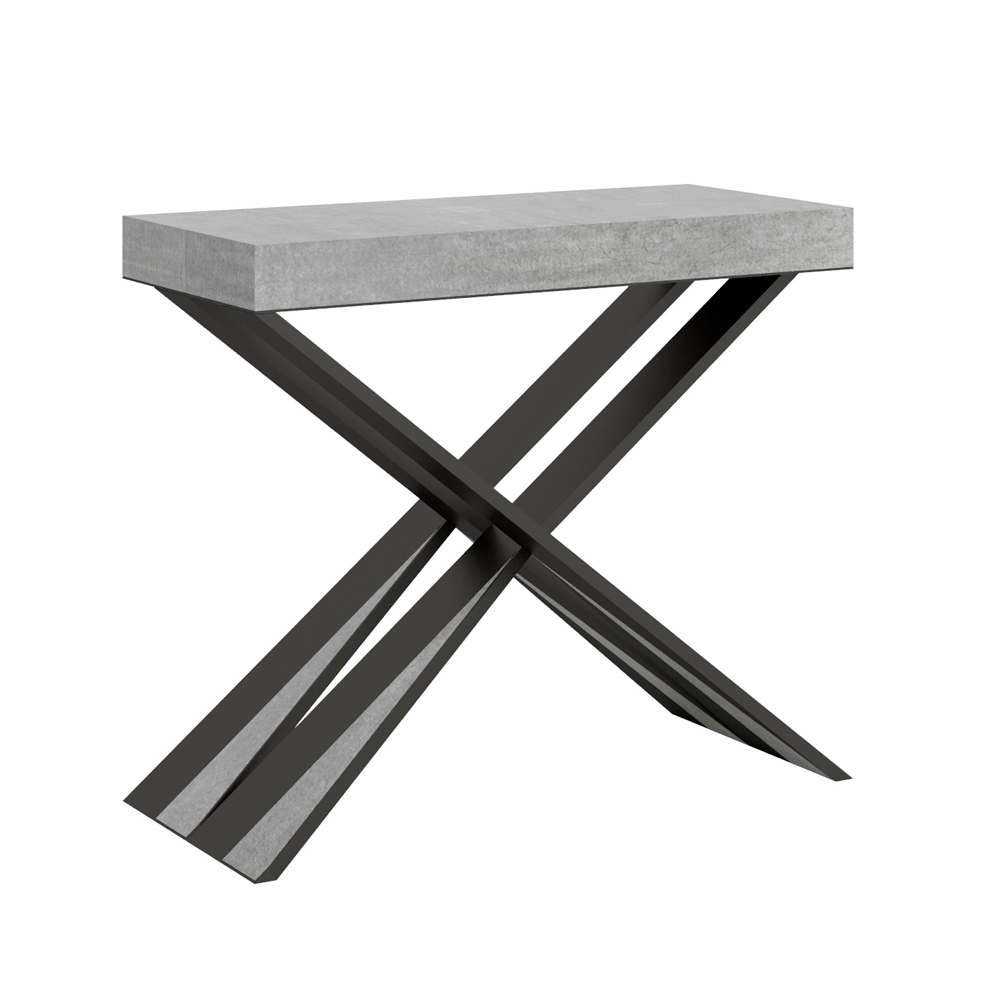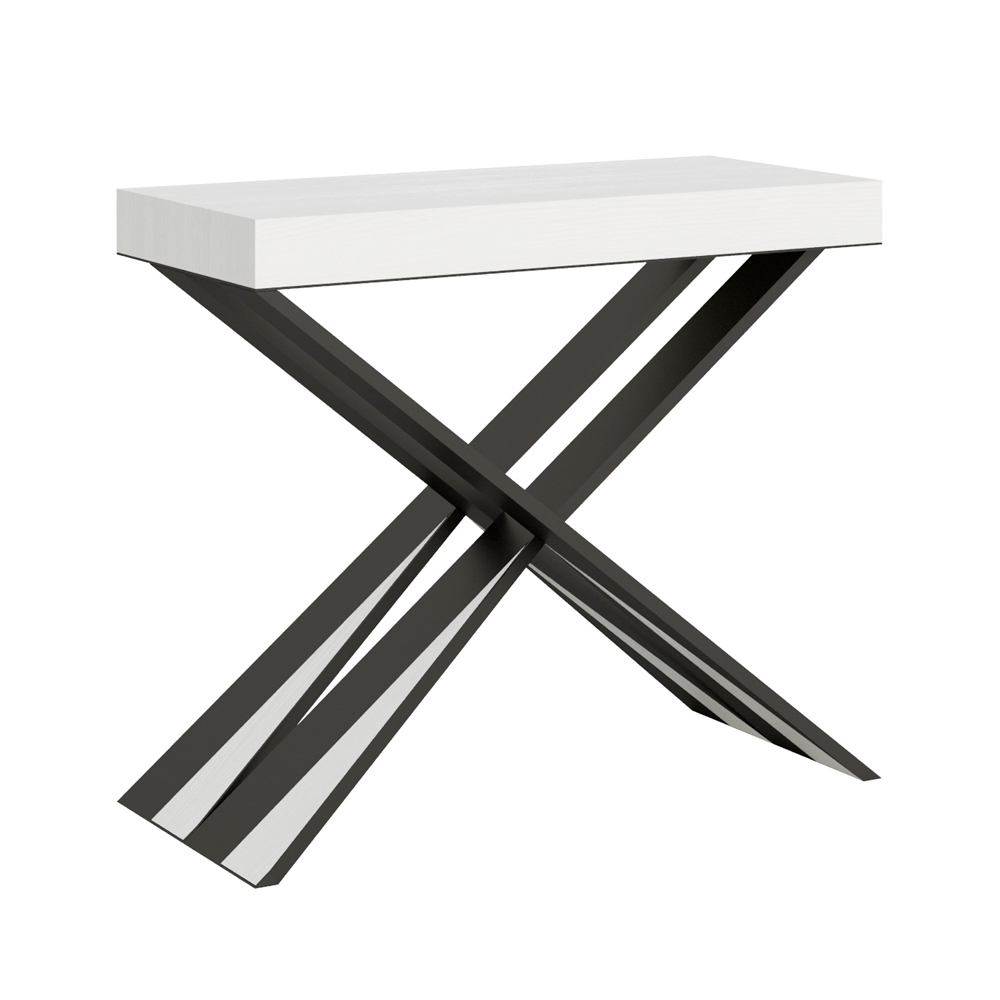 Esta mesa de console extensível incorpora elegância e funcionalidade em um design atraente. É caracterizada por uma silhueta moderna com uma base X que não só fornece um suporte sólido, mas também adiciona um toque de originalidade sofisticada. O tampo em madeira mobiladaè um tributo à qualidade do Made in Italy, apreciado pela sua durabilidade e capacidade de resistir à passagem do tempo.