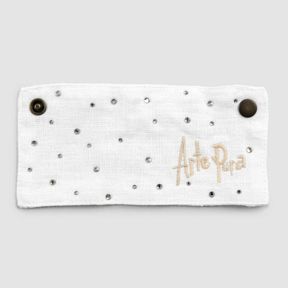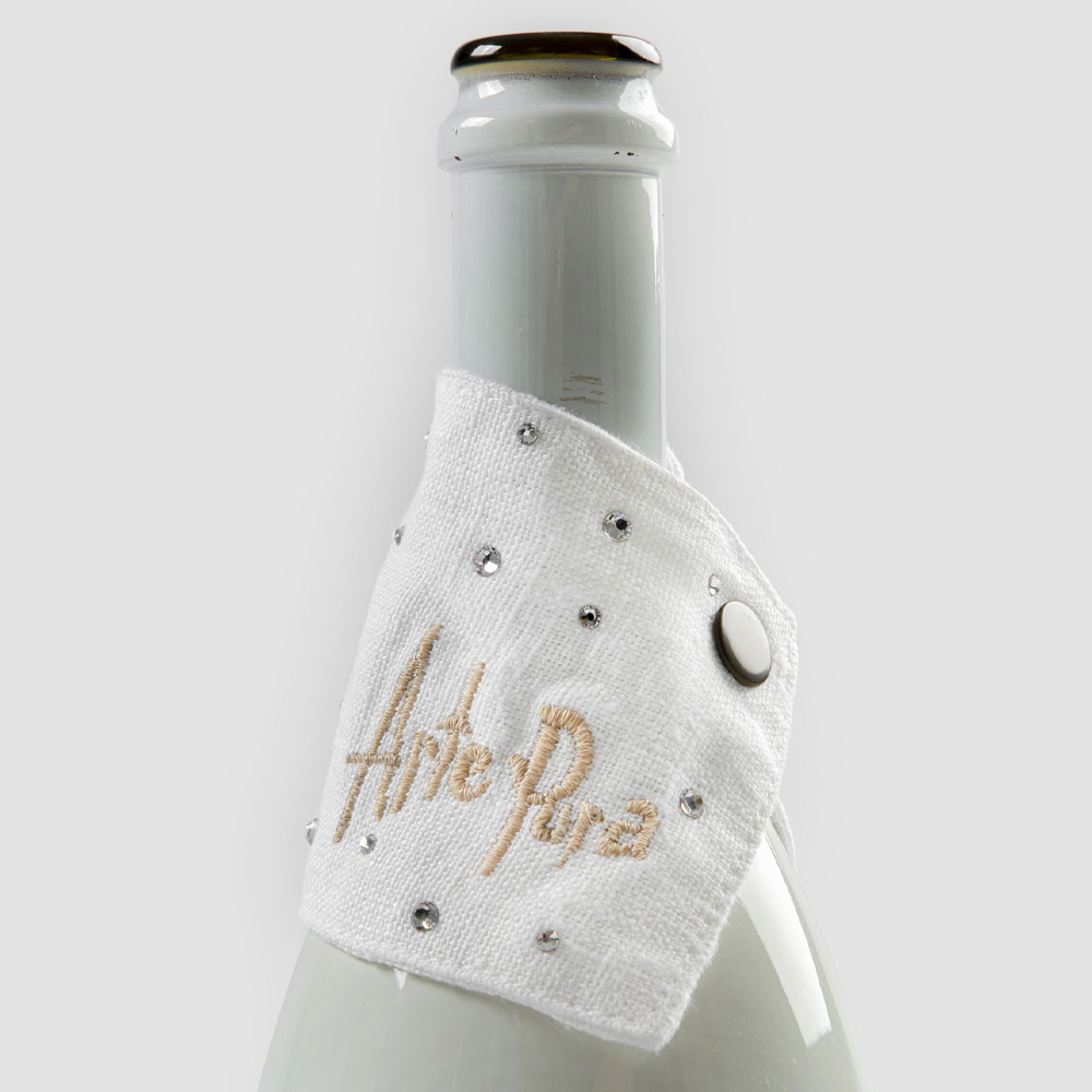 Conta-gotas para garrafas em linho branco ou preto com cristais decorativos, feito na qualidade Itália.