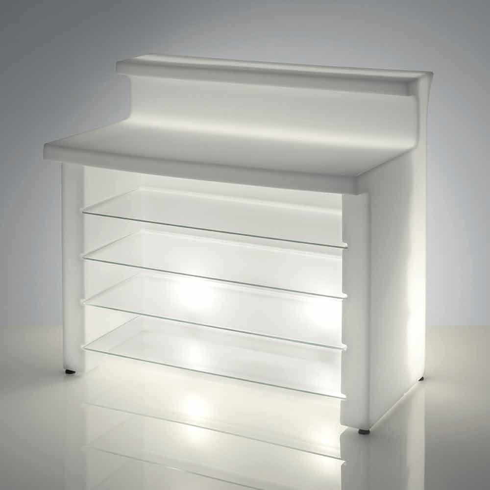 Break Line é um balcão luminoso ideal tanto para ambientes externos quanto internos, perfeito para eventos e noites como um toque chique e elegante.