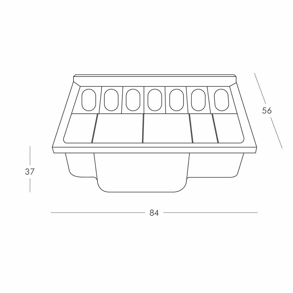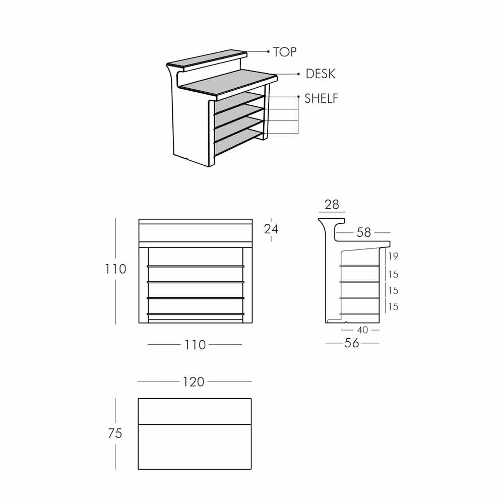 É feito de polietileno branco brilhante e é muito versátil graças aos vários componentes opcionais que podem ser escolhidos para torná-lo um móvel ainda mais funcional e completo. Esses incluem: