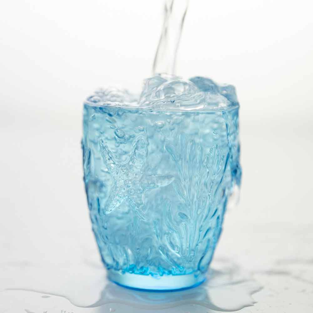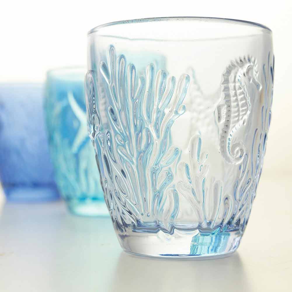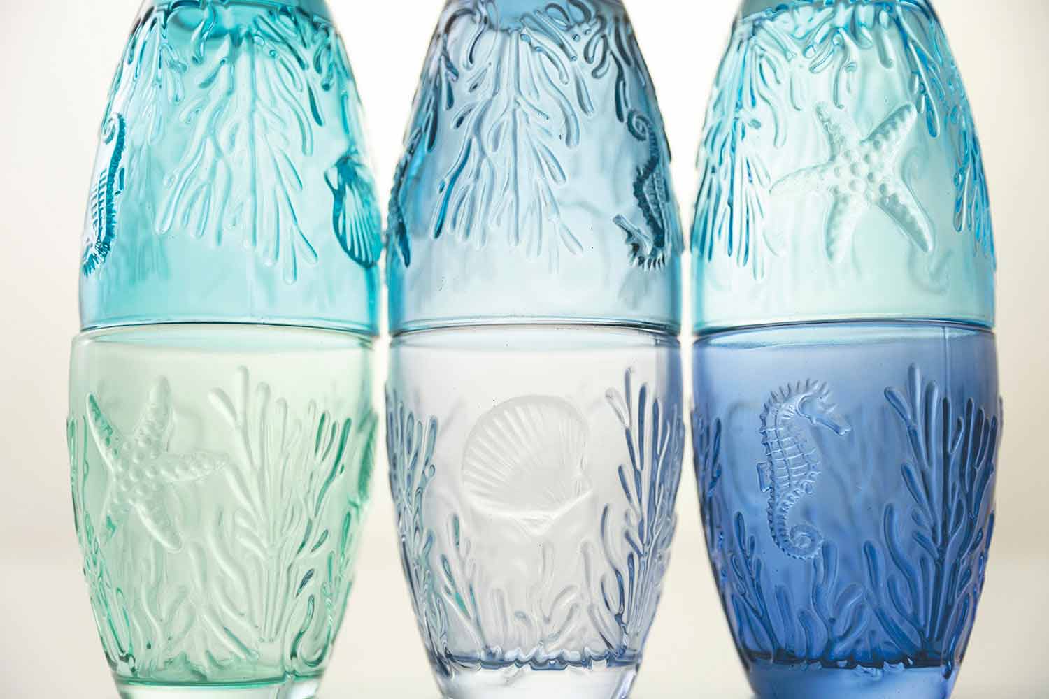 transparência do vidro é combinada com o conceito de água cristalina do mar.