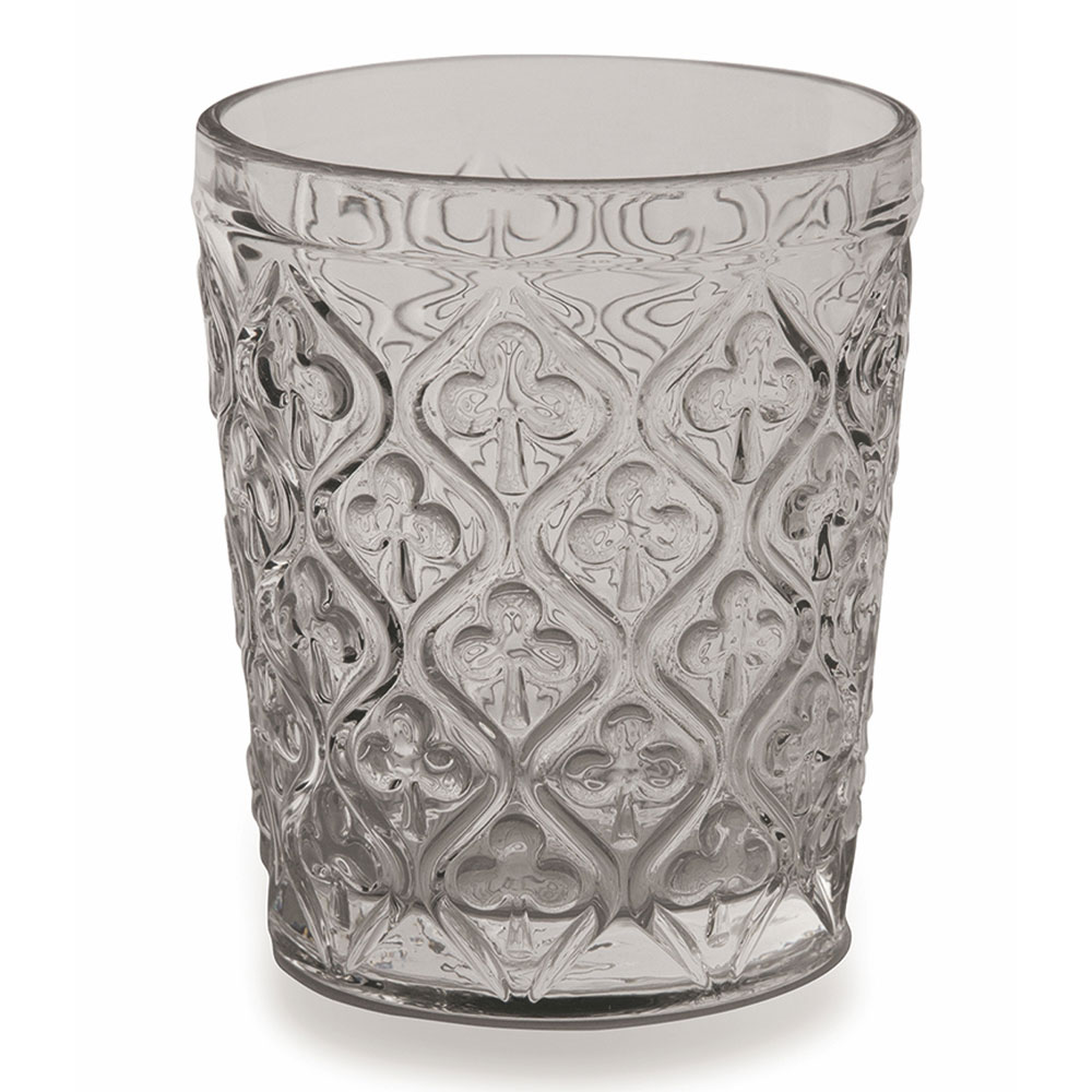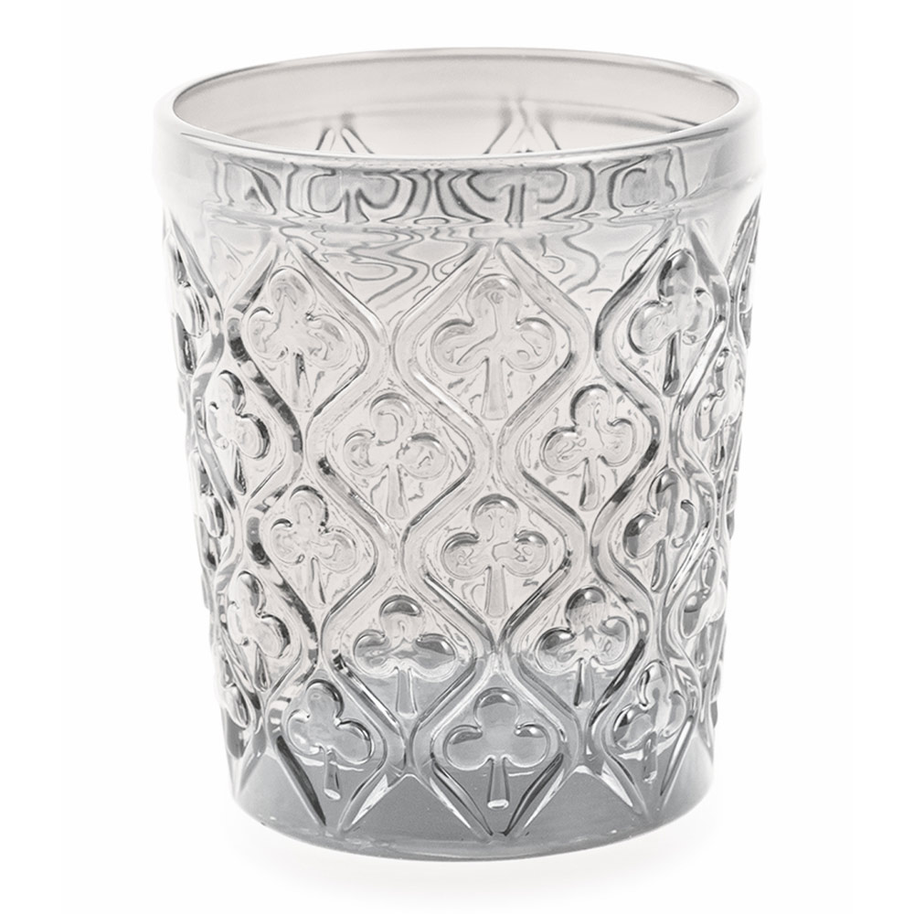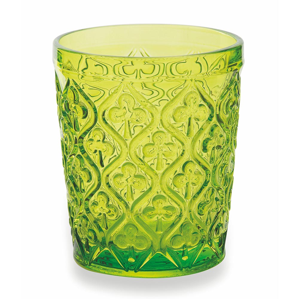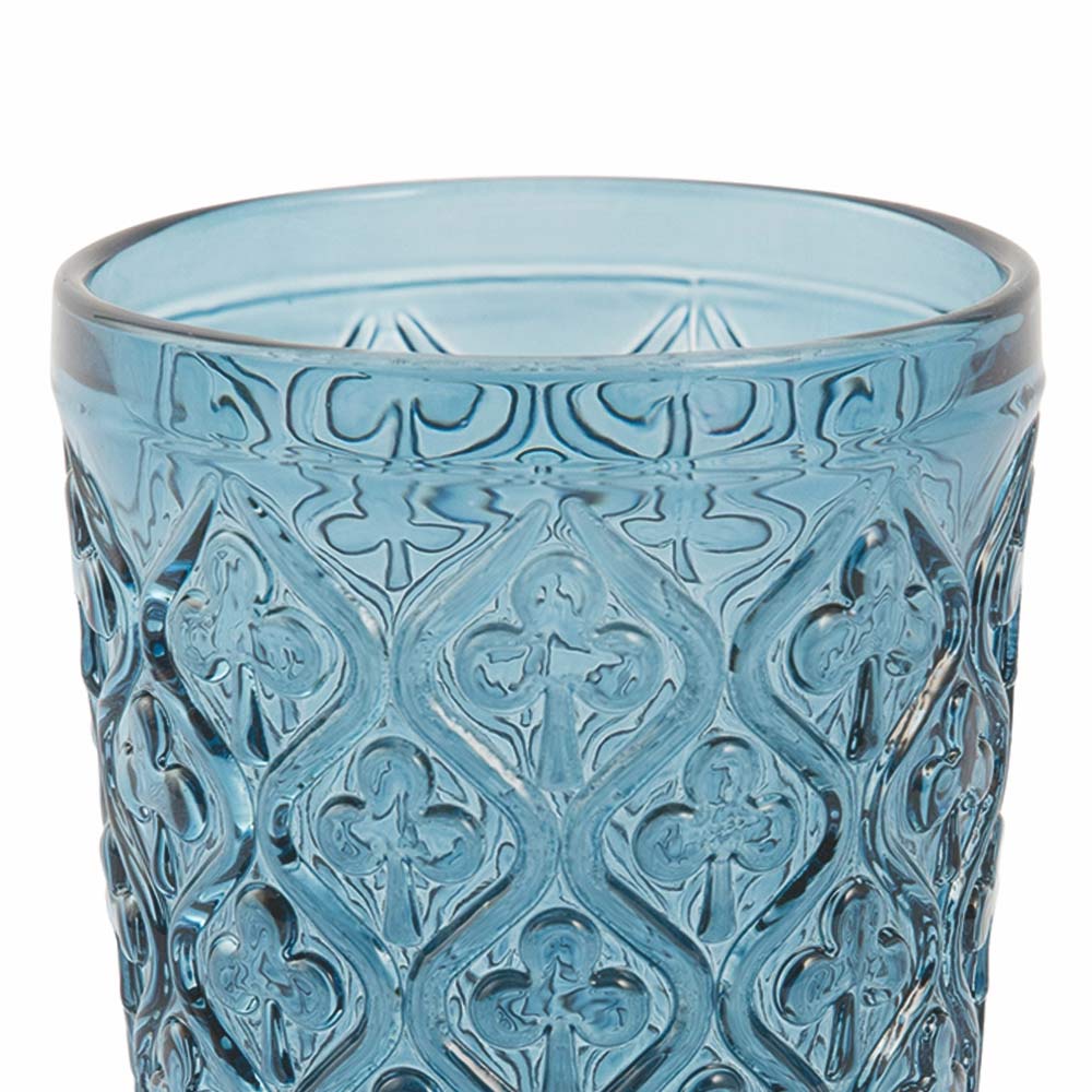 Copos para água cravados em vidro colorido e decoração arabescos, 12 peças.