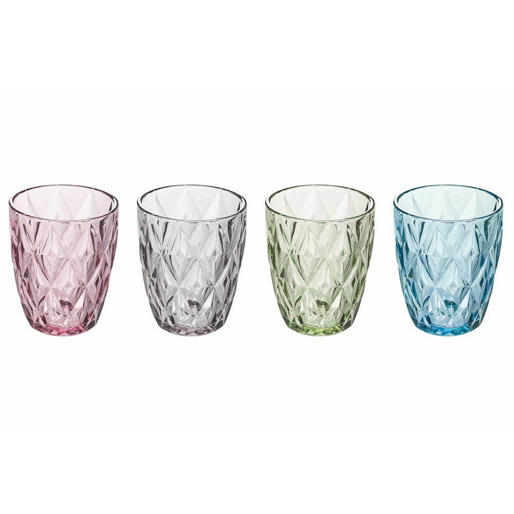 Conjunto de copos de água de vidro colorido com entalhes, 12 peças.