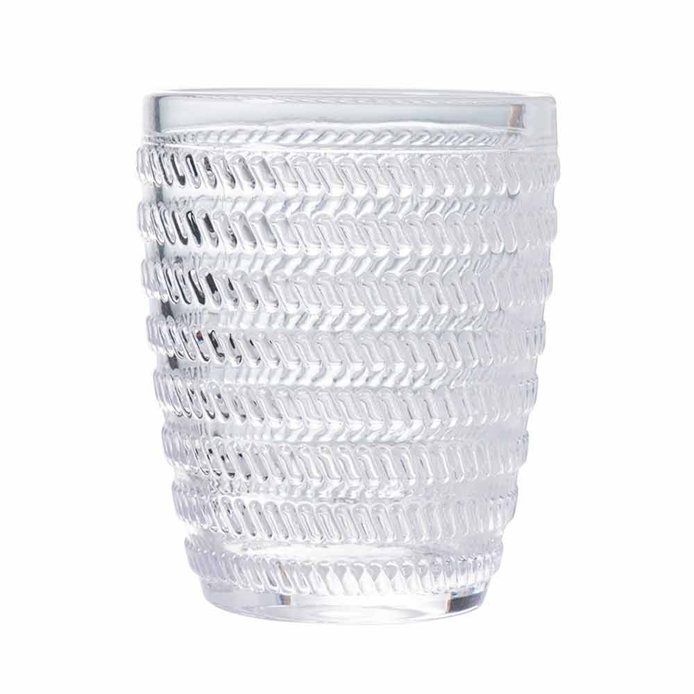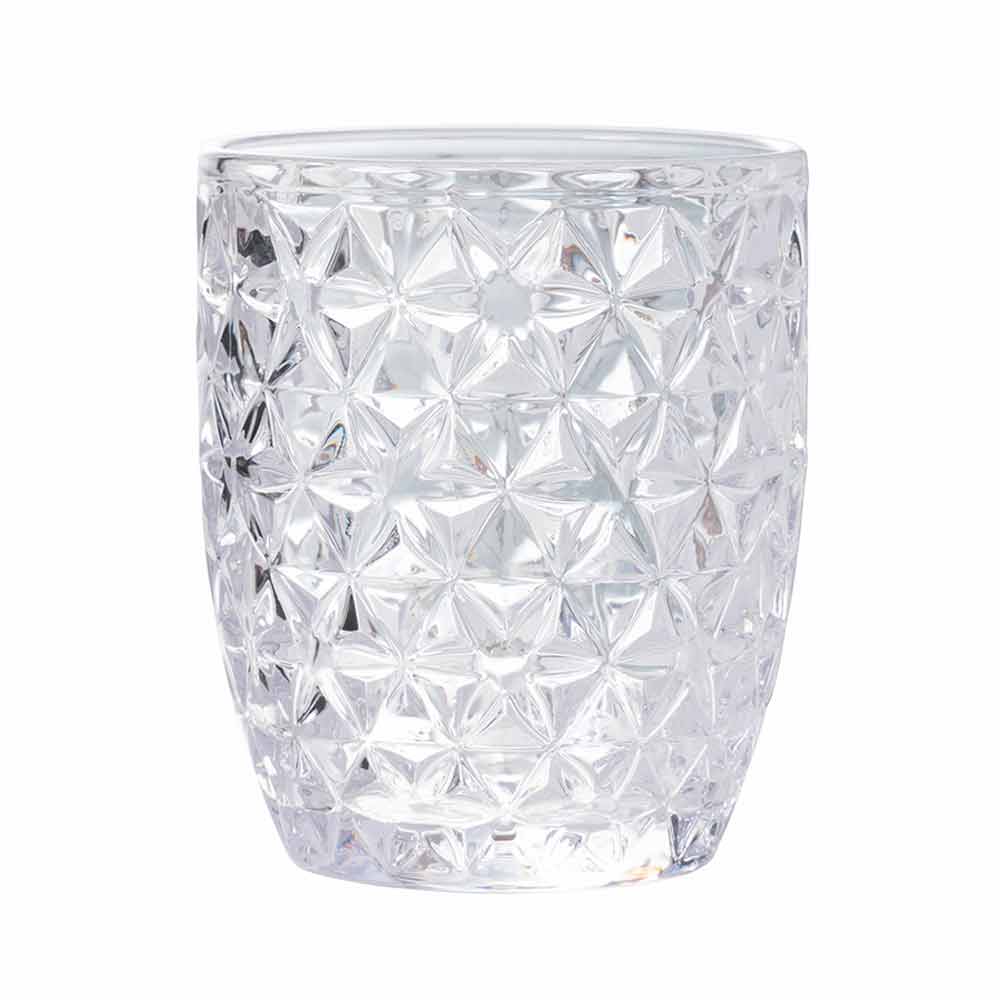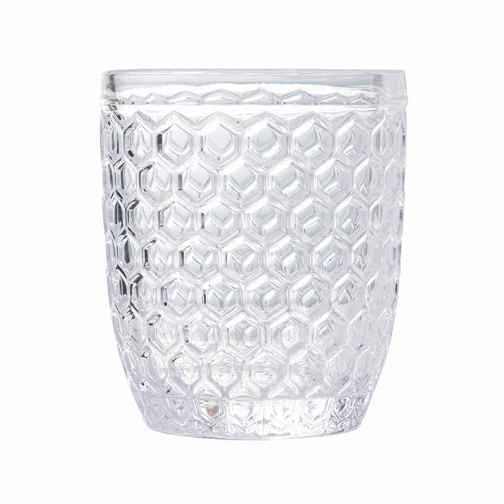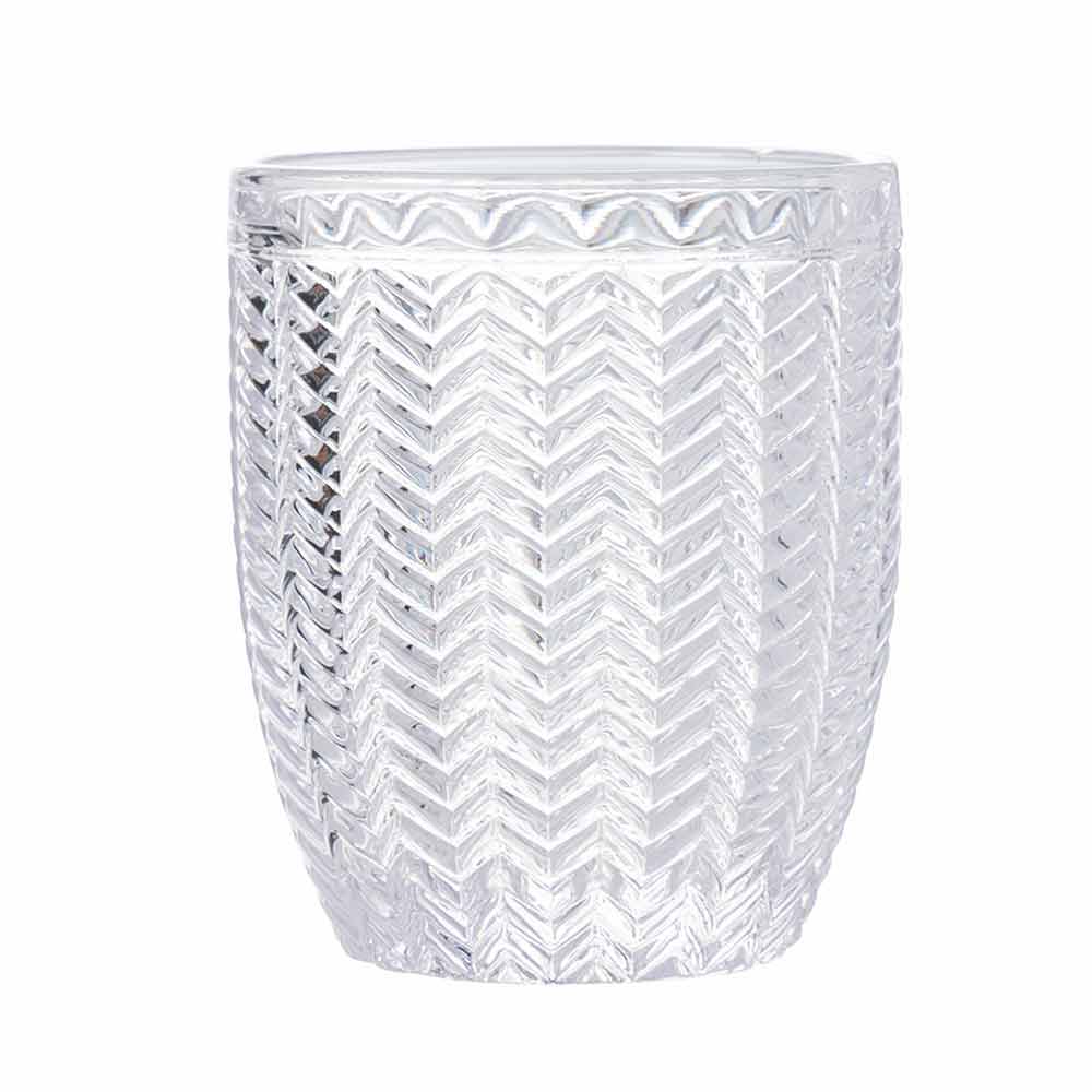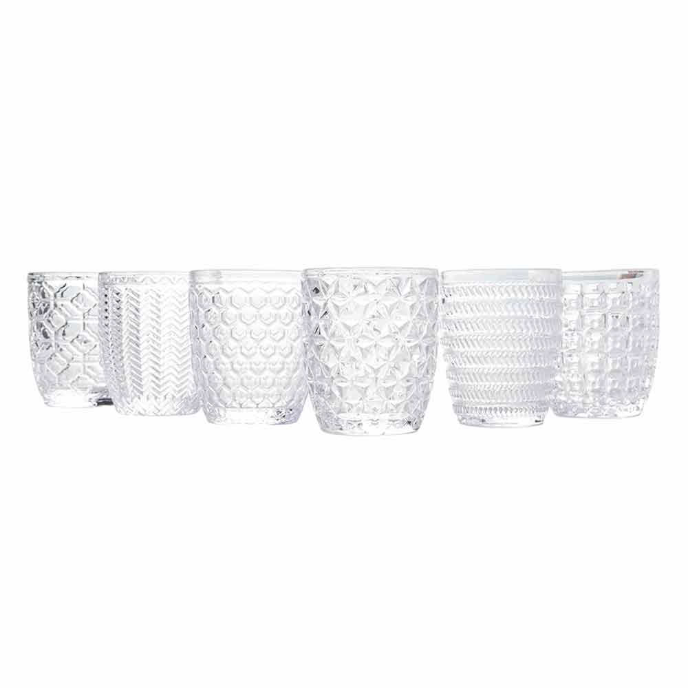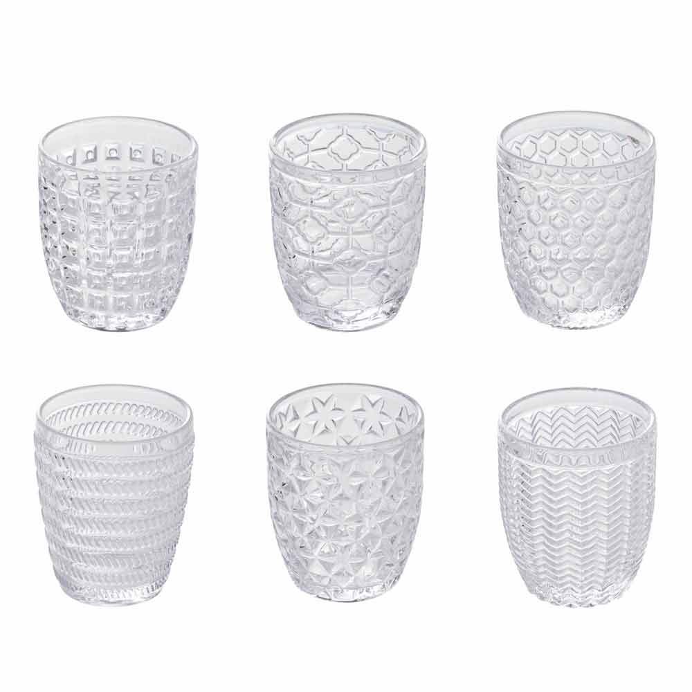 Conjunto de copos para água em vidro transparente decorado com diferentes geometrias, 12 peças.