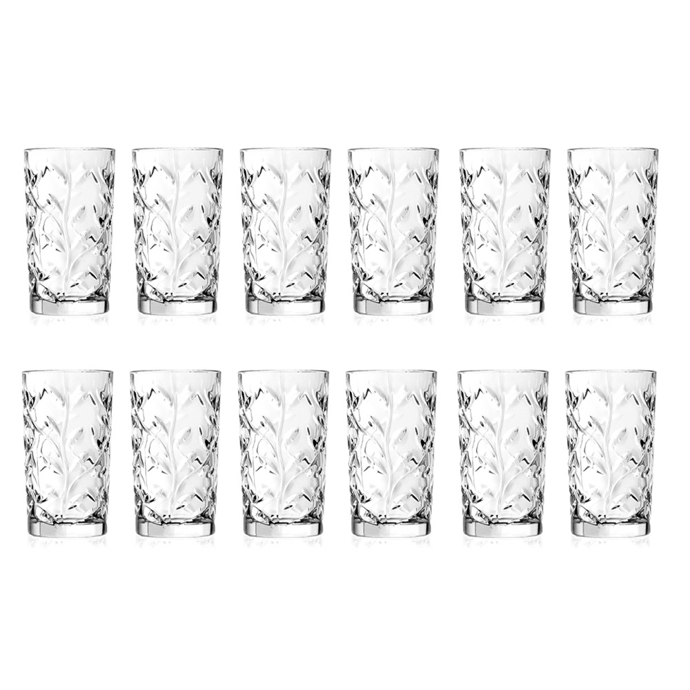 Taça alta em cristal ecológico com decoração foliar, 12 peças made in Italy.