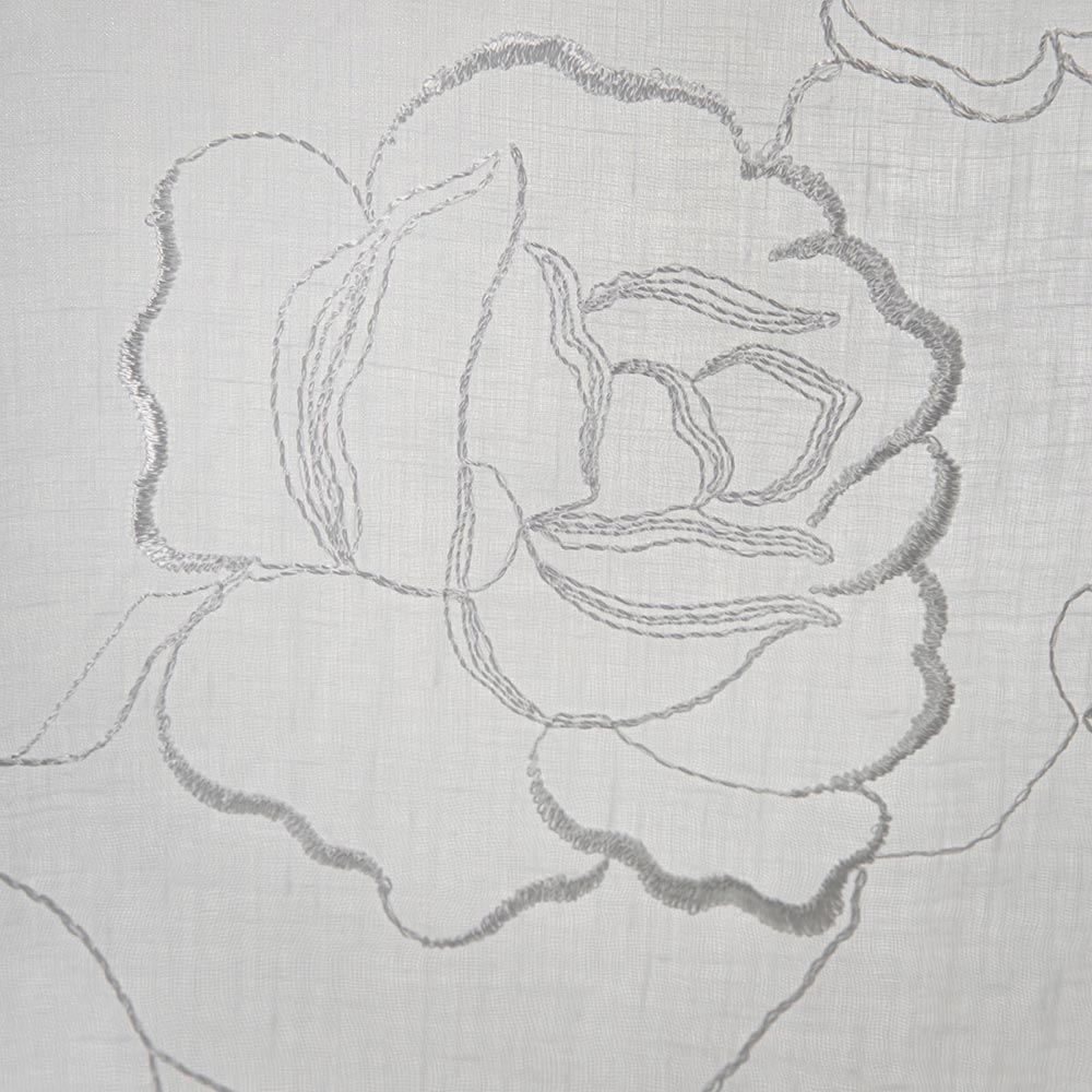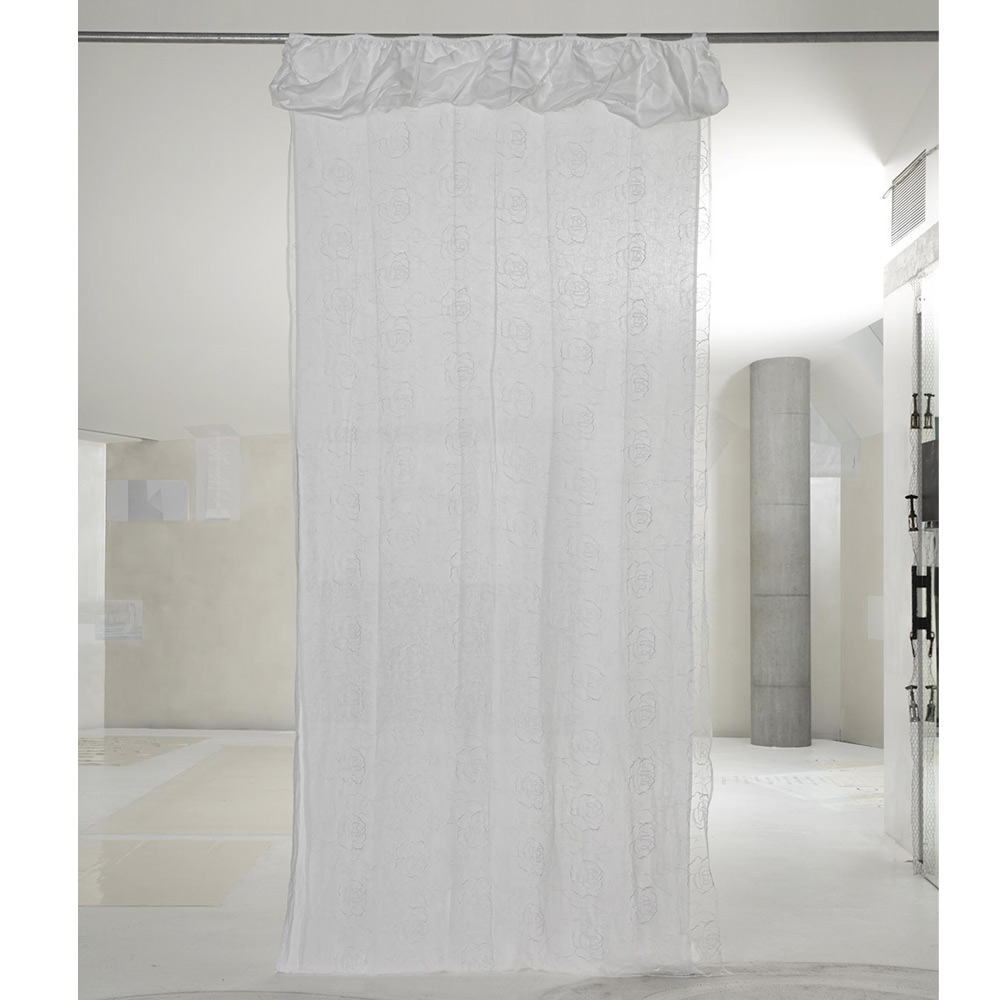 Cortina branca em gaze de linho e organza com rosas bordadas, elegante design made in Italy.