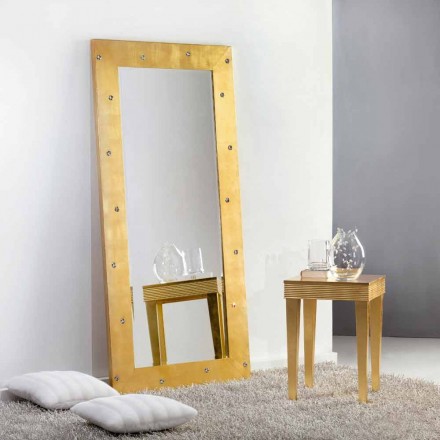 Espelho de parede prateado / dourado em madeira, totalmente feito à mão na Itália, Samuele