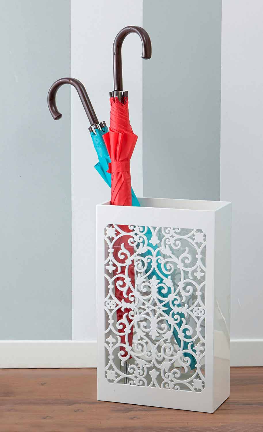 Suporte para guarda-chuva de chão em madeira branca, cascalho, pomba cinza ou areia, com um design moderno decorado com borboletas, fabricado na Itália.