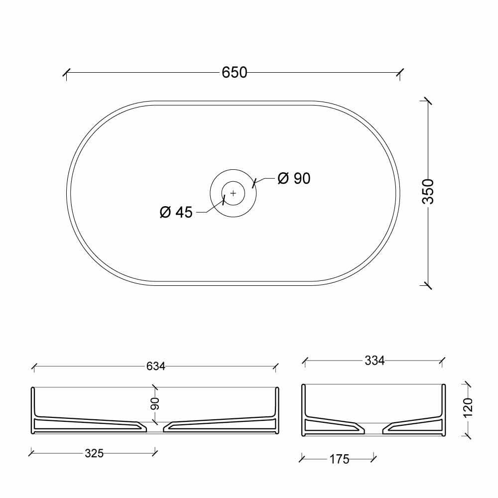 NB: Dreno cerâmico de descarga livre incluído, torneira excluída.